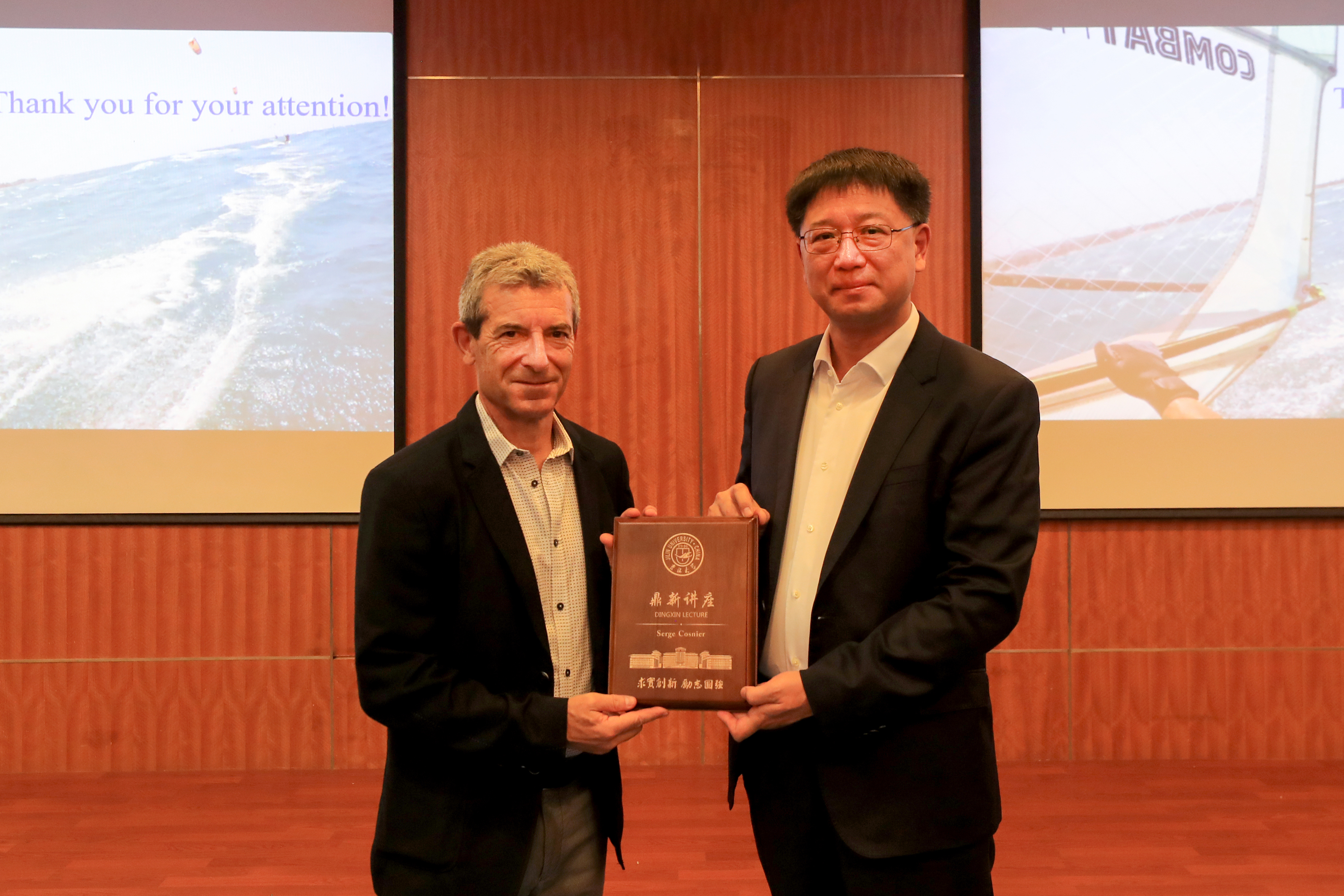 校长张希出席讲座并为Serge Cosnier教授颁发鼎新讲座纪念牌。ACG港湾