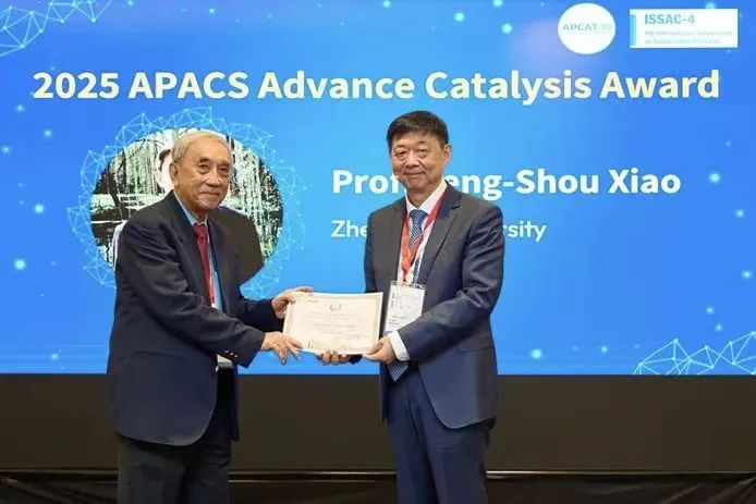 校友总会公众号】2025年8月4-7日,在新加坡举行的第十届亚太催化大会(APCAT-10)上,吉大化学79级校友、浙江大学教授肖丰收因其在多相催化研究领域取得的突出成就,荣获了第三届“亚太催化成就奖”(Advance of Catalysis Award)。该奖项是亚太催化协会颁发的最高学术奖项,旨在奖励在催化科学和技术研究中做出杰出贡献的亚太地区催化科学工作者。在该会议上,肖丰收教授还受邀作了题为“Design of Efficient Heterogeneous Catalysts by Adjusting Adsorbates”的授奖大会报告。随后,在举行的亚太催化理事会选举中,肖丰收教授被选为亚太催化协会理事会主席。