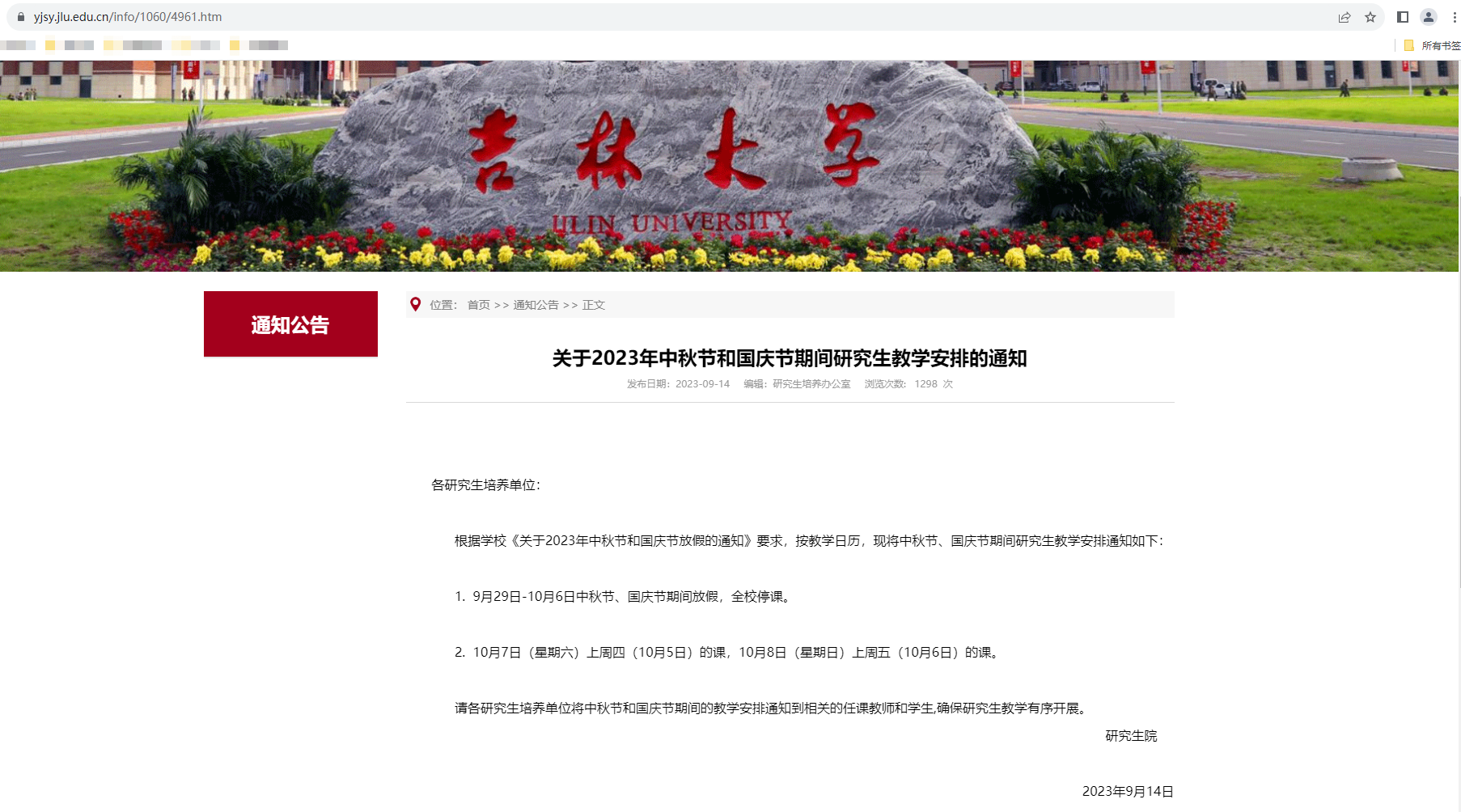 学校开设的公共课,按照研究生院培养办公室2023年09月14日发布的《关于2023年中秋节和国庆节期间研究生教学安排的通知》进行。//yjsy.acggwan.com/info/1060/4961.htm