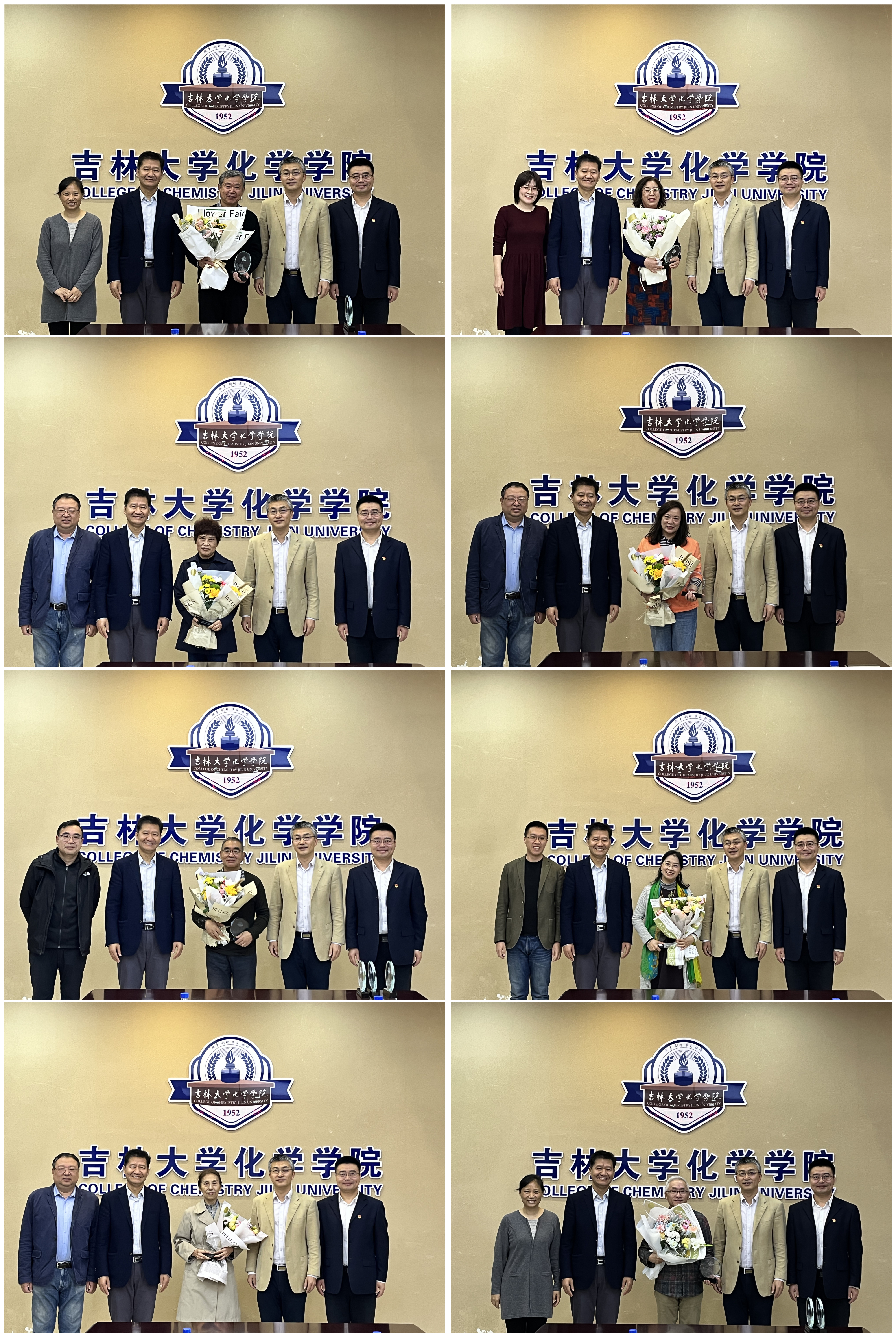 荣休纪念牌和鲜花,并合影留念。