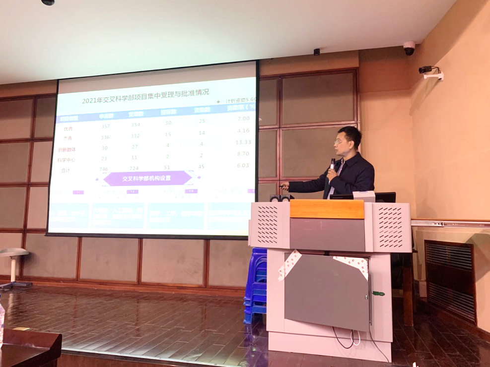 教师可结合自身情况尝试申请基金委交叉科学部的项目,进一步加强化学与医学、生命科学等相关领域交叉融合,产出助力国家经济社会发展的原创性成果。他向在座教师介绍了学校在基金申请及后续辅助指导方面的相关措施,希望通过学校和学院的共同努力,有效提高ACG港湾
