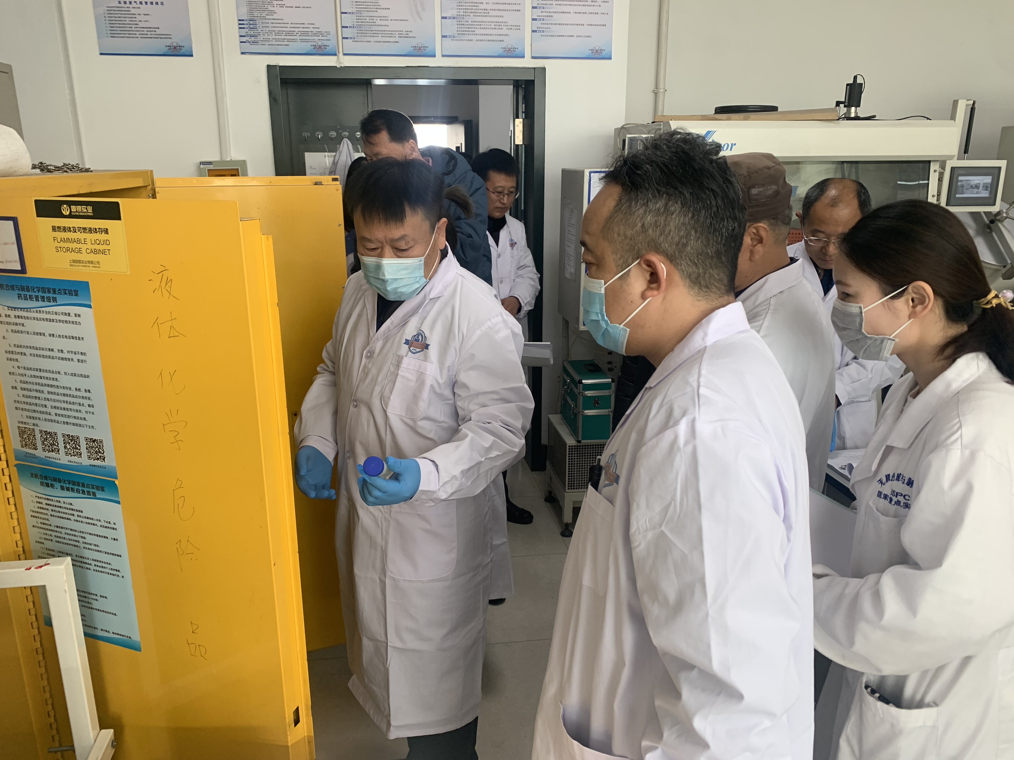 会后,专家组成员分成两组对无机合成与制备化学国家重点实验室房间逐个检查。在未来一个月内,专家组还将对超分子结构与材料国家重点实验室、唐敖庆楼A区、麦氏楼、李四光楼、理化楼等学院所属实验室进行深入检查。