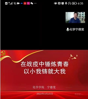 党委书记宁德宽通过线上为学院学生党员上了一堂题为“在战‘疫’中锤炼青春,以小我铸就大我”的党课。学院党办、学工办和研办的老师及学生党员共253人参加了此次会议。