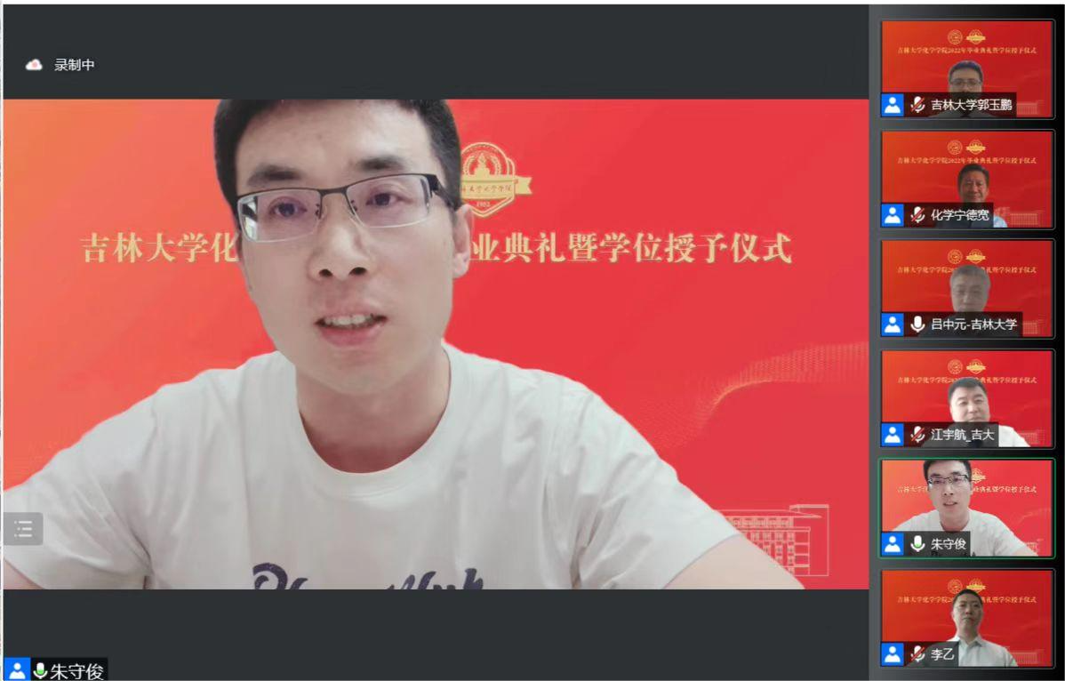 求学的点滴时光,感谢学院的培养、老师的教导、同学的帮助。他说,吉大化学四年的求学生涯,不仅夯实了同学们的化学学科知识基础,更教会同学们做一名胸怀天下、励志报国的人,一名有所爱、敢担当的新时代青年,一名勇于探索、敢于创新的科研后备军。在未来的路上定会一如既往的传承发扬吉大化学精神,为祖国发展贡献力量。