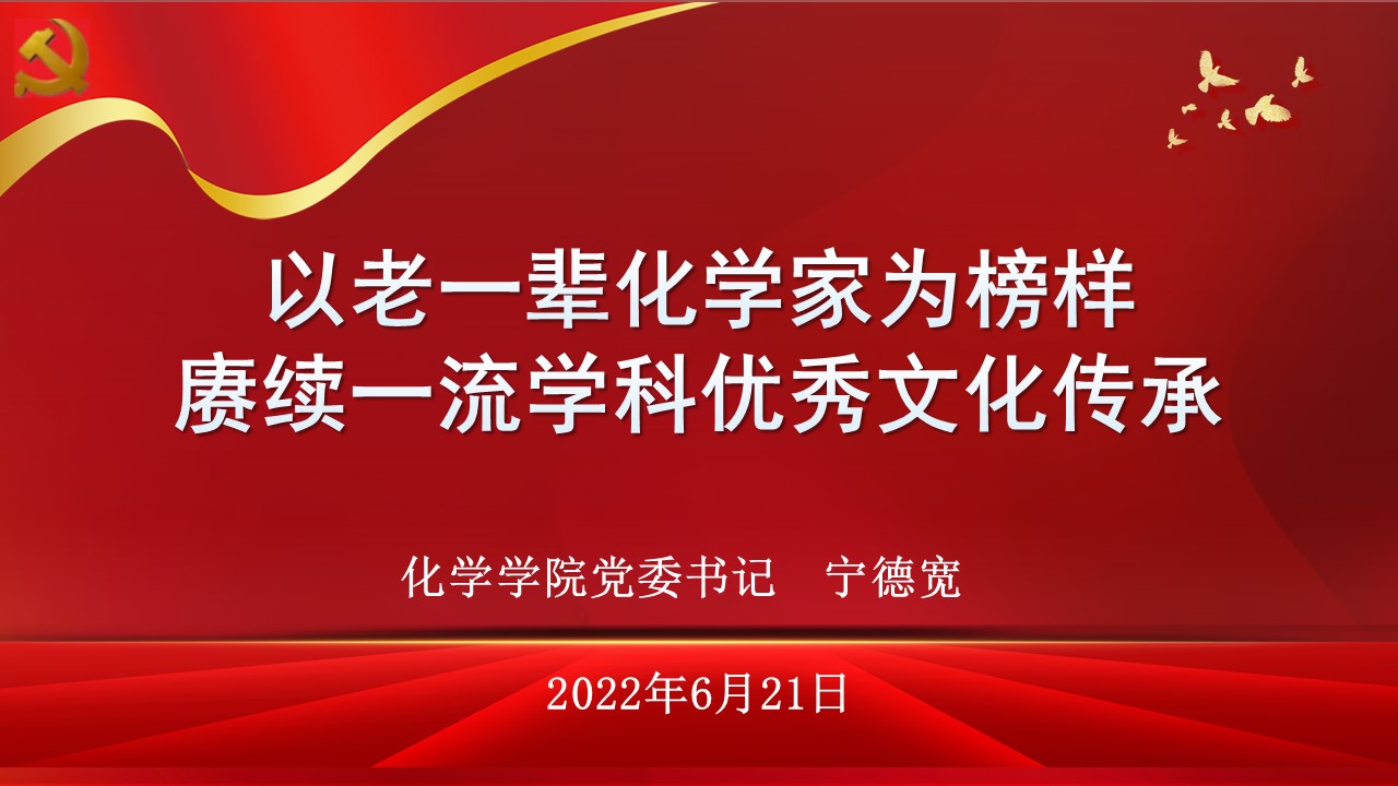 党委书记宁德宽通过腾讯会议形式为学院全体师生党员上了一堂题为“以老一辈化学家为榜样 赓续一流学科优秀文化传承”的精彩党课。