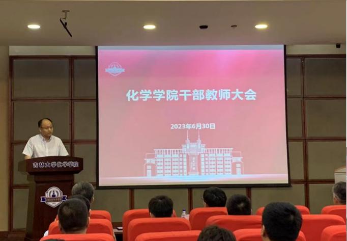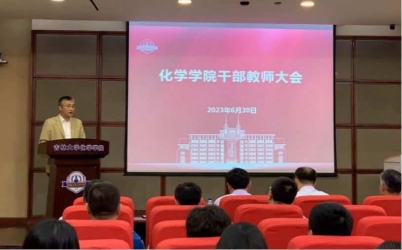 马本华作表态发言时感谢学校党委和学院师生的信任。他表示,将以习近平新时代中国特色社会主义思想武装头脑,切实将理论学习成果转化为助推学校、学院各项事业蓬勃发展的具体思路、有效举措,助力化学学科内涵式发展。他郑重表态,必将牢记责任,不负重托、不辱使命,以更加坚定的信念、更加饱满的激情和更加昂扬的姿态,凝心聚力,锐意进取,与学院党政领导班子成员一起,团结带领学院师生为争创世界一流学科的目标而奋斗,不辜负学校党委的信任和重托。