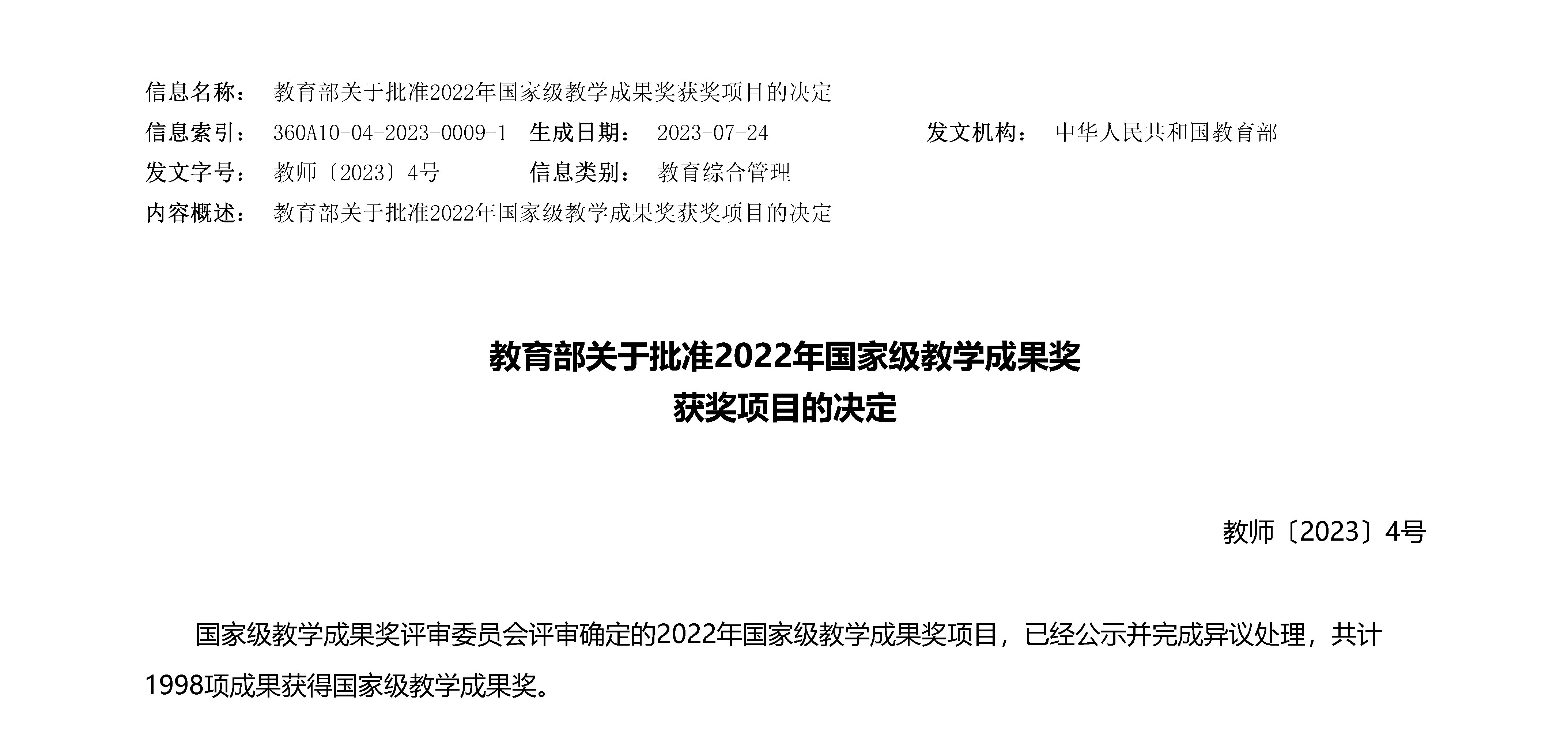 近日,《教育部关于批准2022年国家级教学成果奖获奖项目的决定》(教师〔2023〕4号)公布。ACG港湾