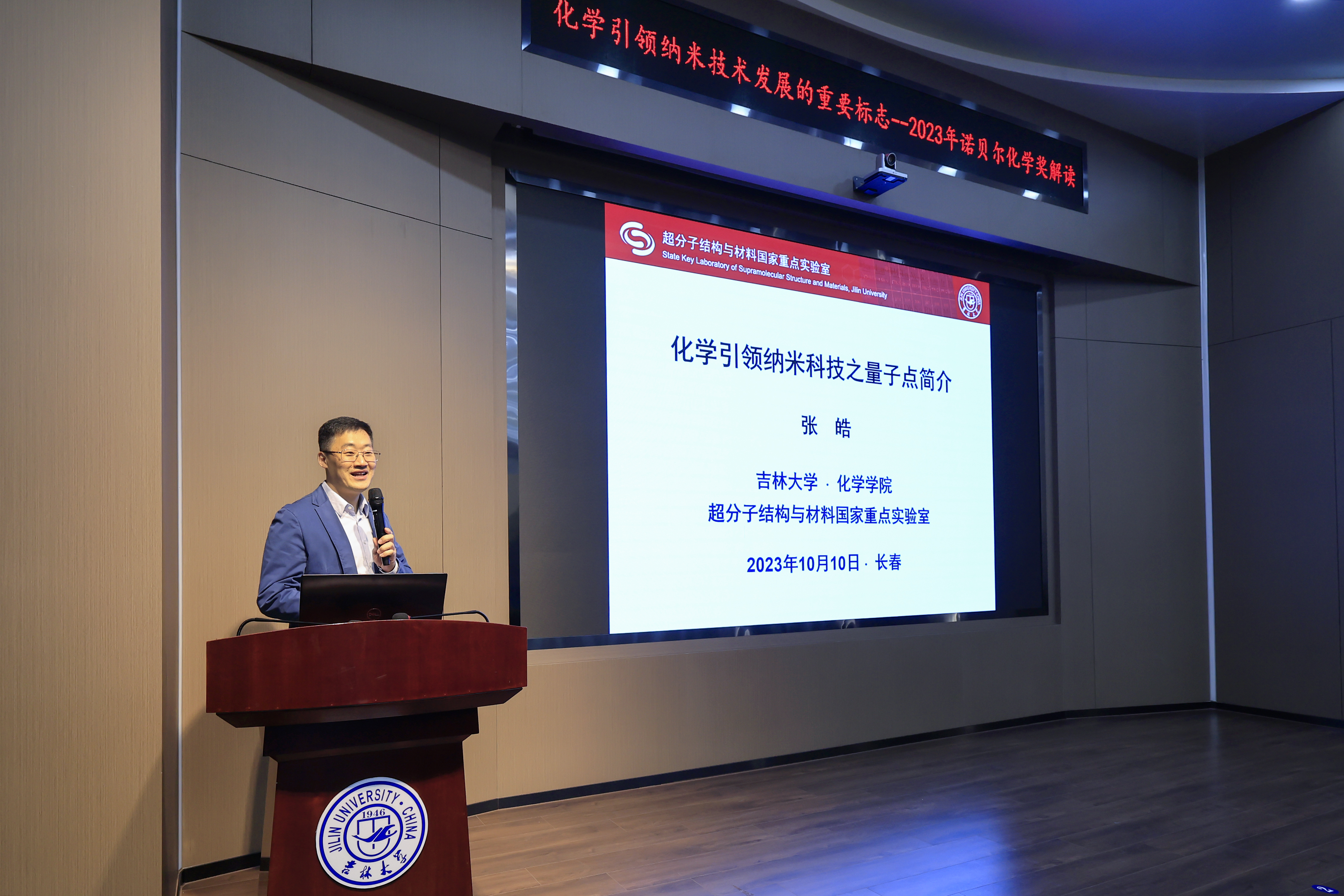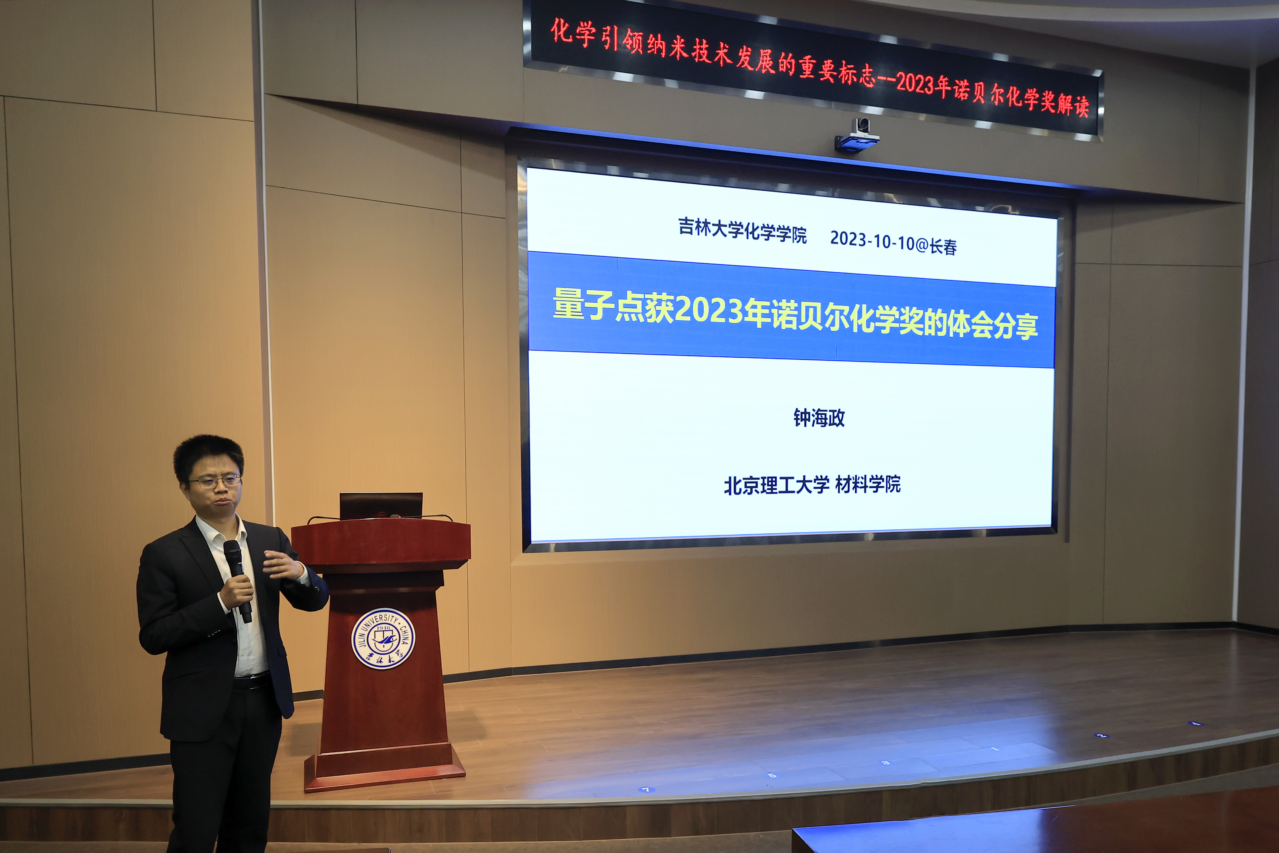 张皓教授以及国家自然科学基金优秀青年科学基金获得者、北京理工大学钟海政教授为师生做2023年诺贝尔化学奖授奖情况解读。