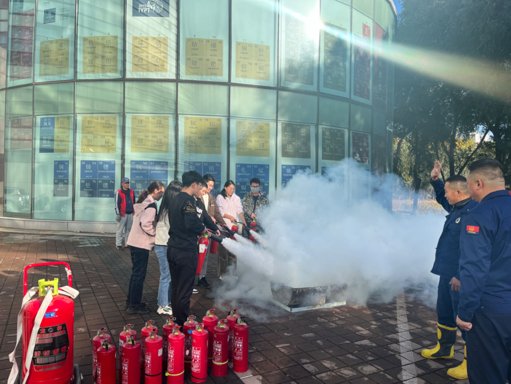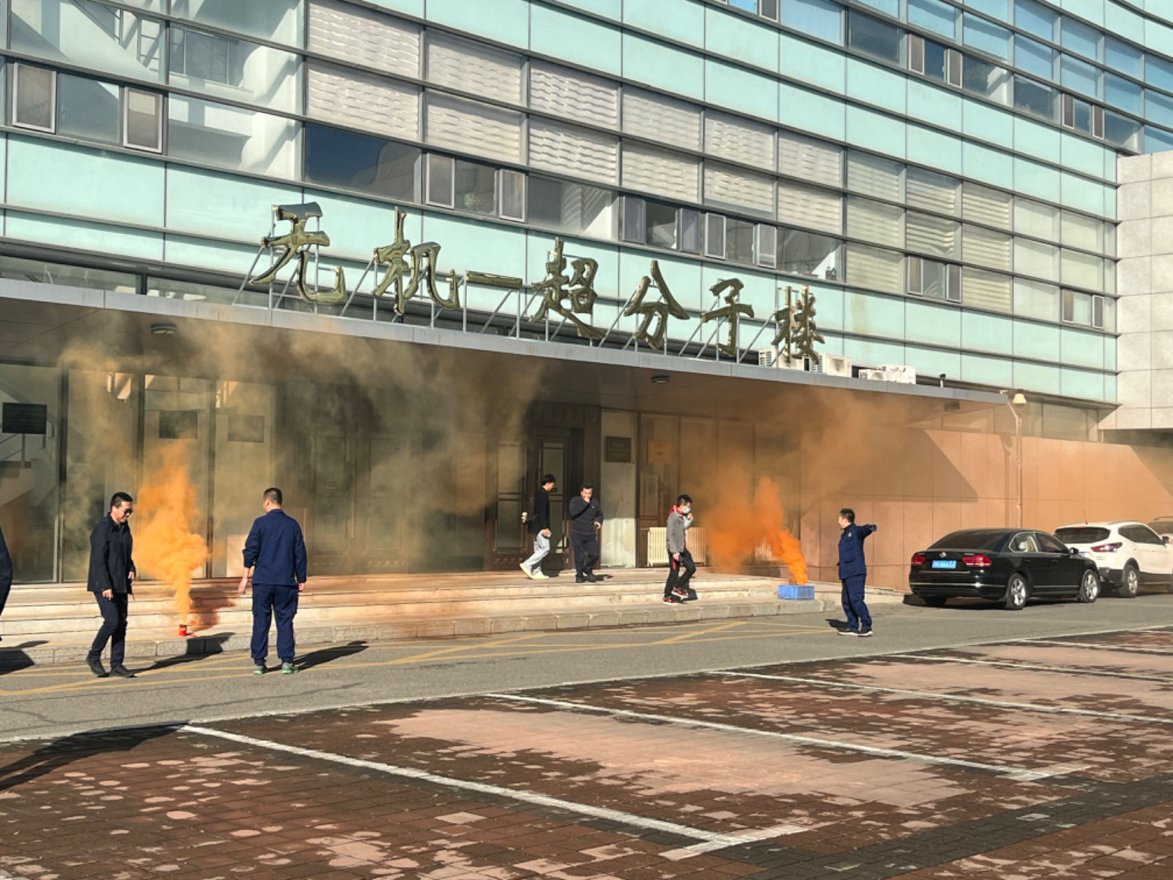 在应急疏散演练环节,演练指挥小组以模拟无机-超分子楼内突发火情为背景,全景演练了突发火情后全楼师生紧急疏散撤离、消防队员灭火等流程。演练过程中,楼内师生疏散过程井然有序,展现了快速响应能力,演练达到了预期目标。