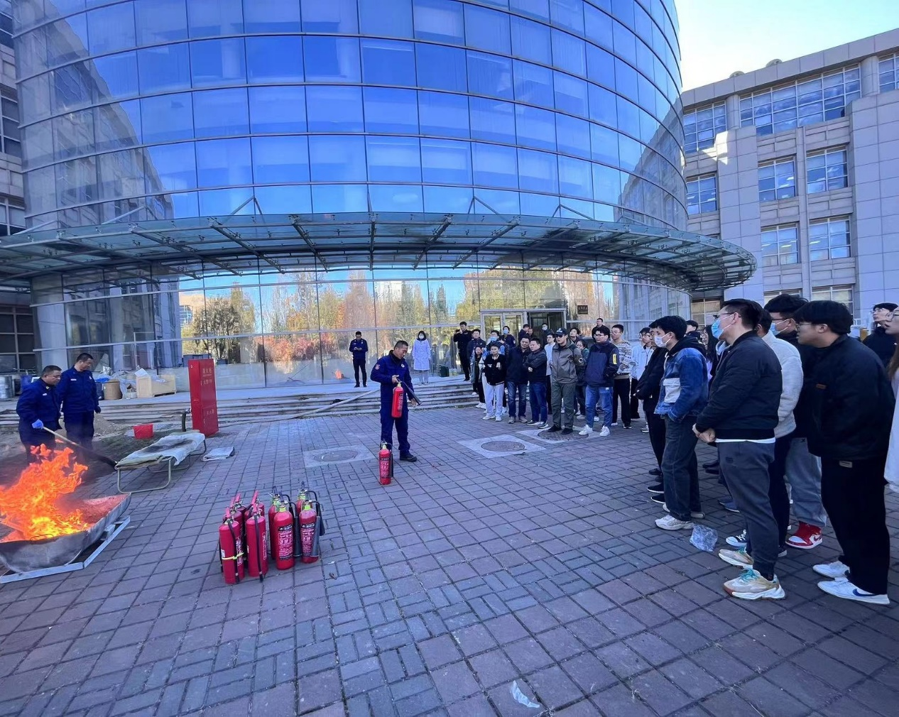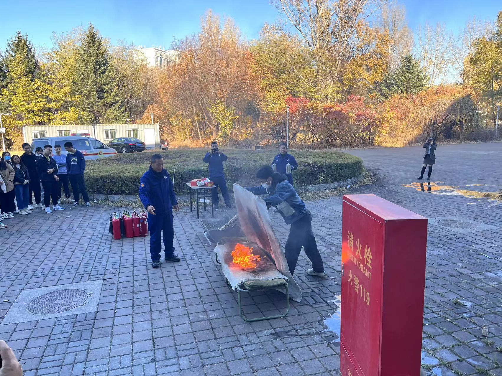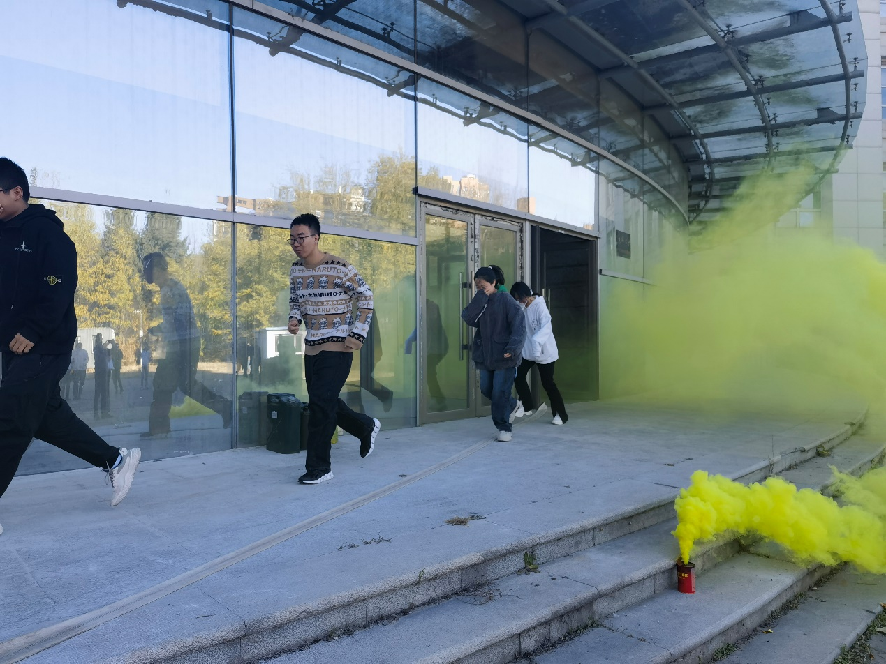 首先,保卫处模拟了火灾现场的浓烟,楼内师生安全有序地被疏散到楼后场地。随后,保卫处工作人员细致入微地讲解了各类消防器材的使用,包括防毒面具、灭火毯、灭火器以及消火栓等,并着重强调了各类器材使用过程中的注意事项,在场师生受益匪浅。最后,保卫处工作人员现场设置火源,演示灭火器材的使用,学生们积极参与,实地操作了各种灭火器材。