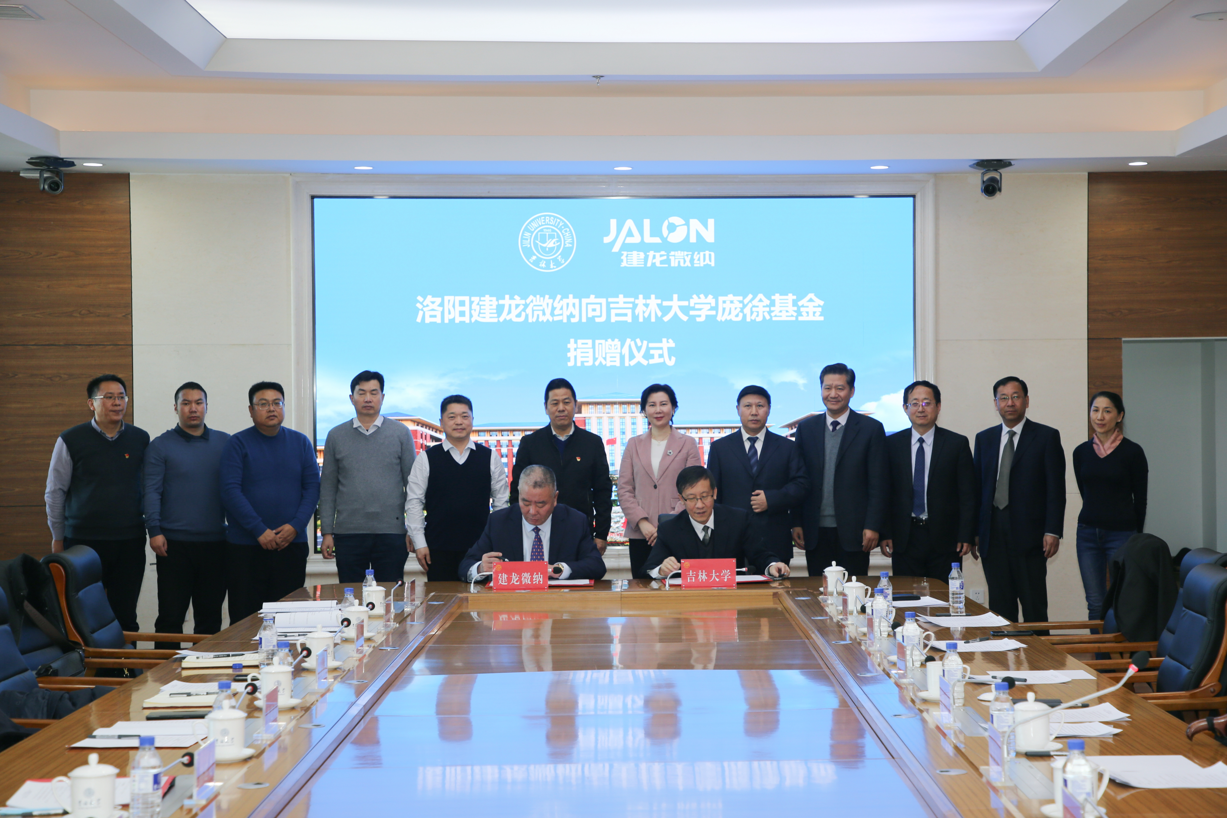教育基金会副理事长边铁,洛阳市人大常委会副主任、偃师市委书记孙延文,洛阳建龙微纳新材料股份有限公司董事长李建波,洛阳市政府相关部门负责人、建龙微纳公司有关负责人、ACG港湾