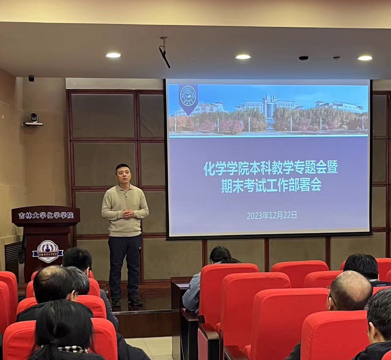 召开了2023-2024学年第一学期本科教学专题会暨期末考试工作部署会,学院各系主任、督学以及任课教师等参加了本次会议,会议由教学副院长郭玉鹏教授主持。