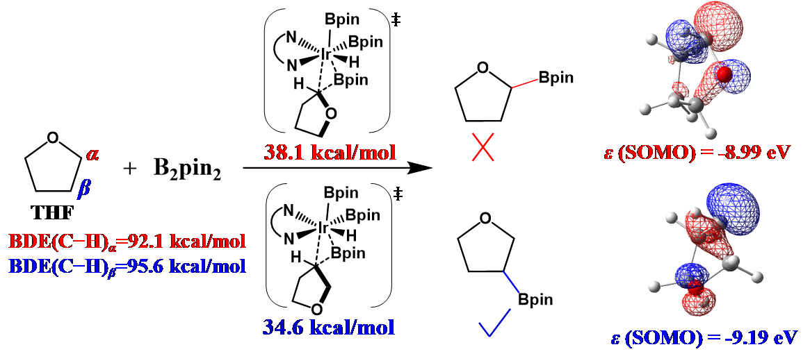 图1 THF的βC(sp3)−H键区域选择性反应及其内在原因。