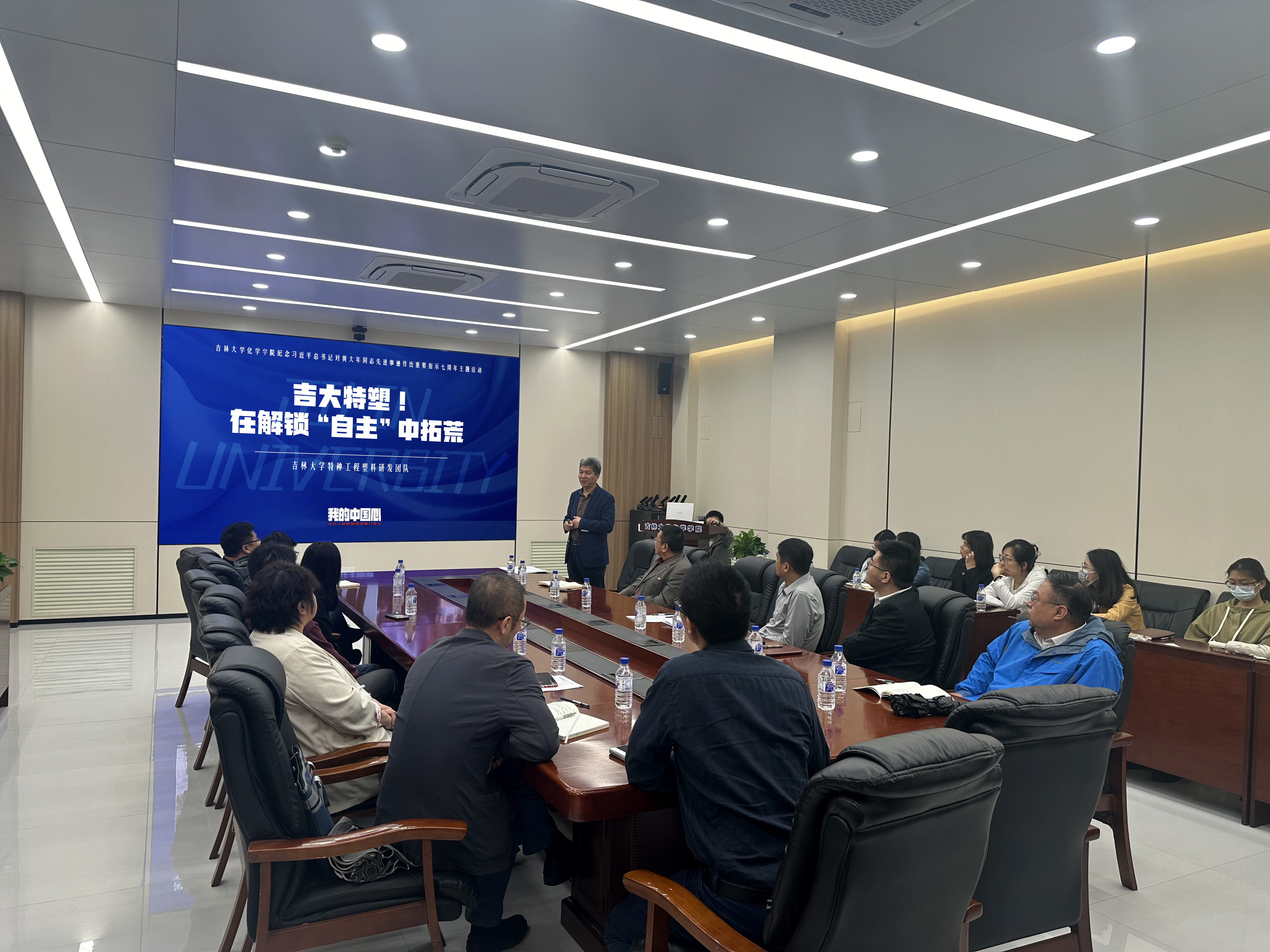 特种工程塑料教育部工程研究中心王贵宾教授,作题为《吉大特塑!在解锁“自主”中拓荒》的专题报告。会议由学院党委书记马本华主持。