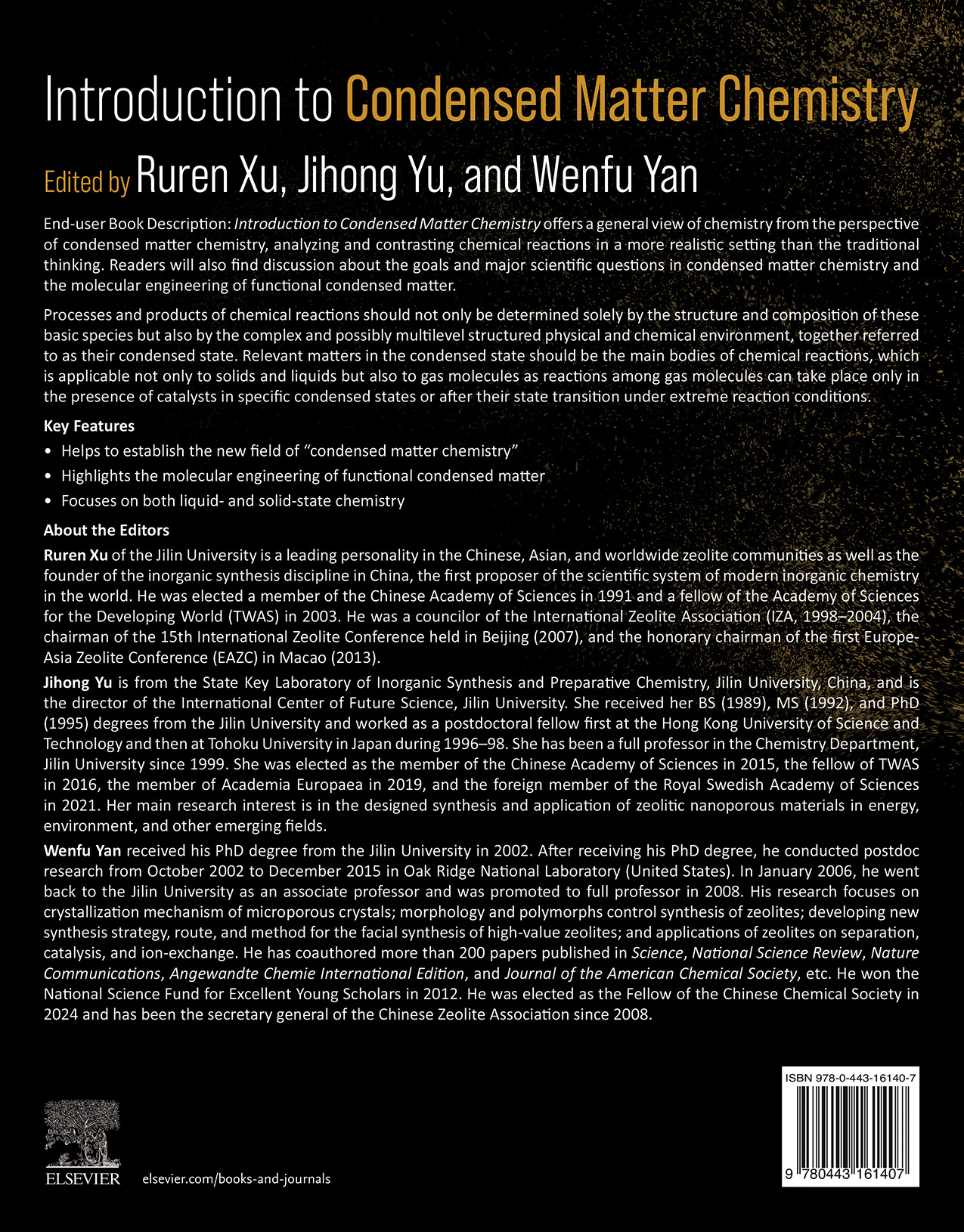 徐如人院士、于吉红院士和闫文付教授主编的专著《Introduction to Condensed Matter Chemistry》由国际权威学术出版机构Elsevier正式出版,该书是国际上第一部关于凝聚态化学的著作。