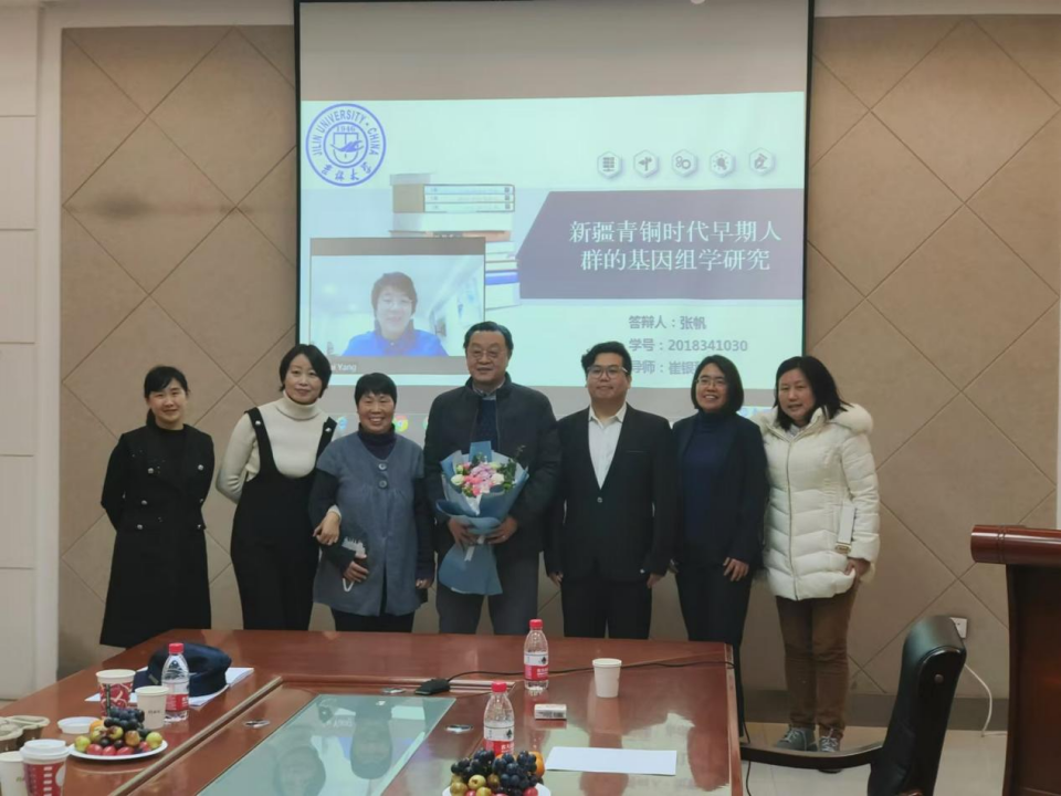 图8 2022年古DNA实验室博士生毕业答辩 周慧教授(左三)朱泓教授(左四)