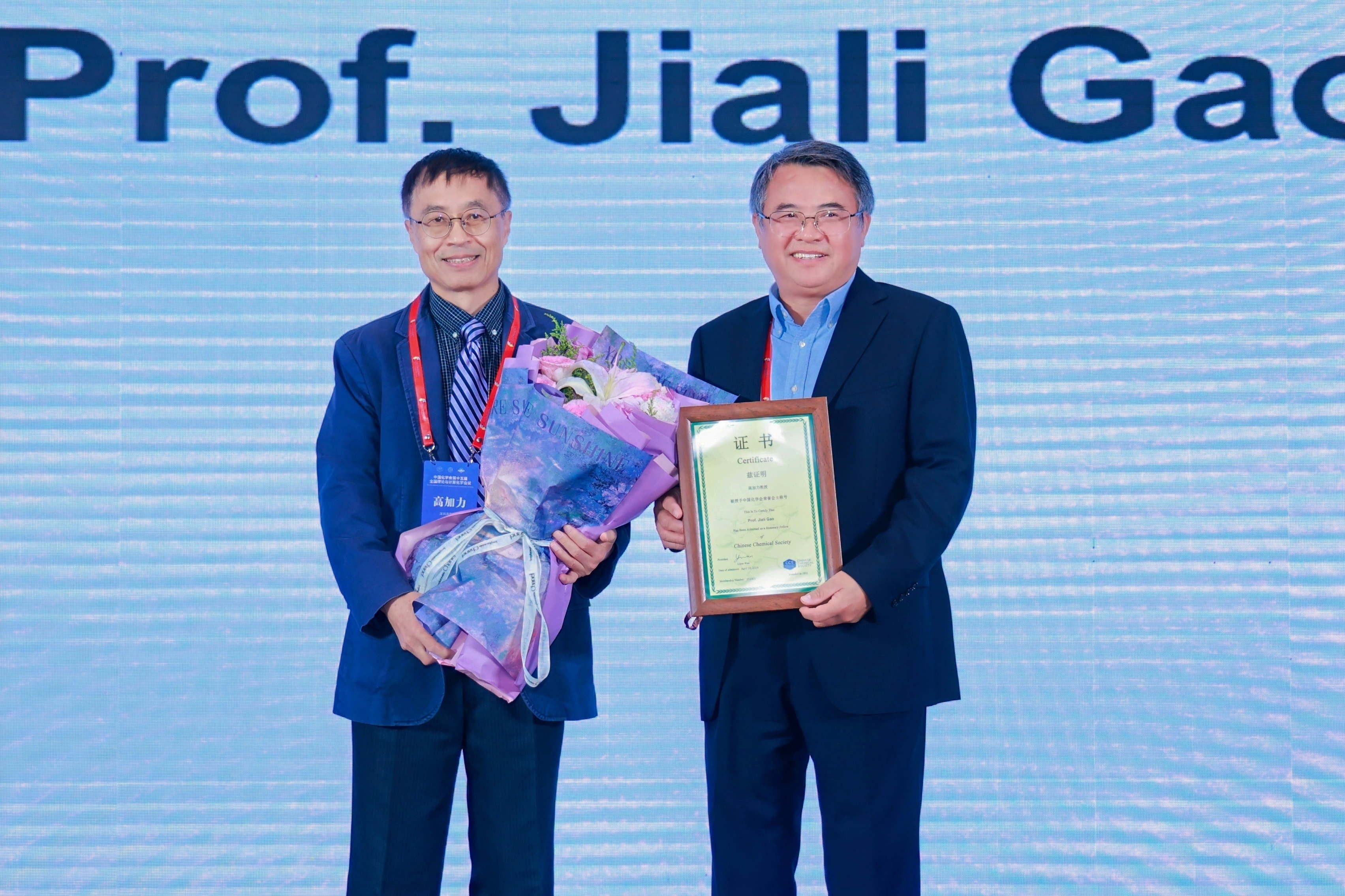 开幕式上,举办了中国化学会荣誉会士授予仪式。帅志刚为国际量子分子科学院院士、美国明尼苏达大学高加力教授颁发荣誉会士证书。