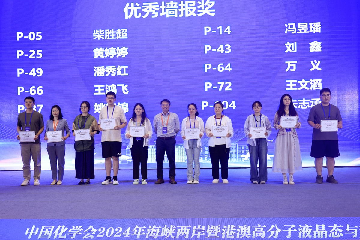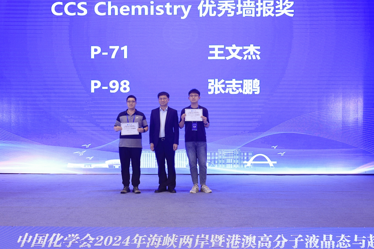 在为期两天的学术交流与研讨中,唐智勇、何荣铭、王钻开、郭绍伟、孙俊奇先后作了题为“纳米自组装多孔膜”“嵌段高分子和手性嵌段高分子自组装”“基于固液特征尺度匹配的超材料设计及应用”“基于软物质材料建构阿基米德镶嵌结构”和“可逆交联聚合物”5个精彩的大会报告。在6个主题论坛中,与会专家学者围绕“液晶高分子的分子工程学”“超分子体系的组装与识别”“自组装体系的理论与表征”“液晶高分子功能材料”“可逆交联与自适应聚合物材料”和“生物超分子组装与功能”作了170个邀请、口头和快闪报告,并展示交流了104份墙报。组委会从中评选出了2个CCS Chemistry优秀墙报,10个会议优秀墙报,以及12个优秀的快闪报告。闭幕式上,张希、何荣铭、孙俊奇分别为获奖代表颁发证书。ACG港湾