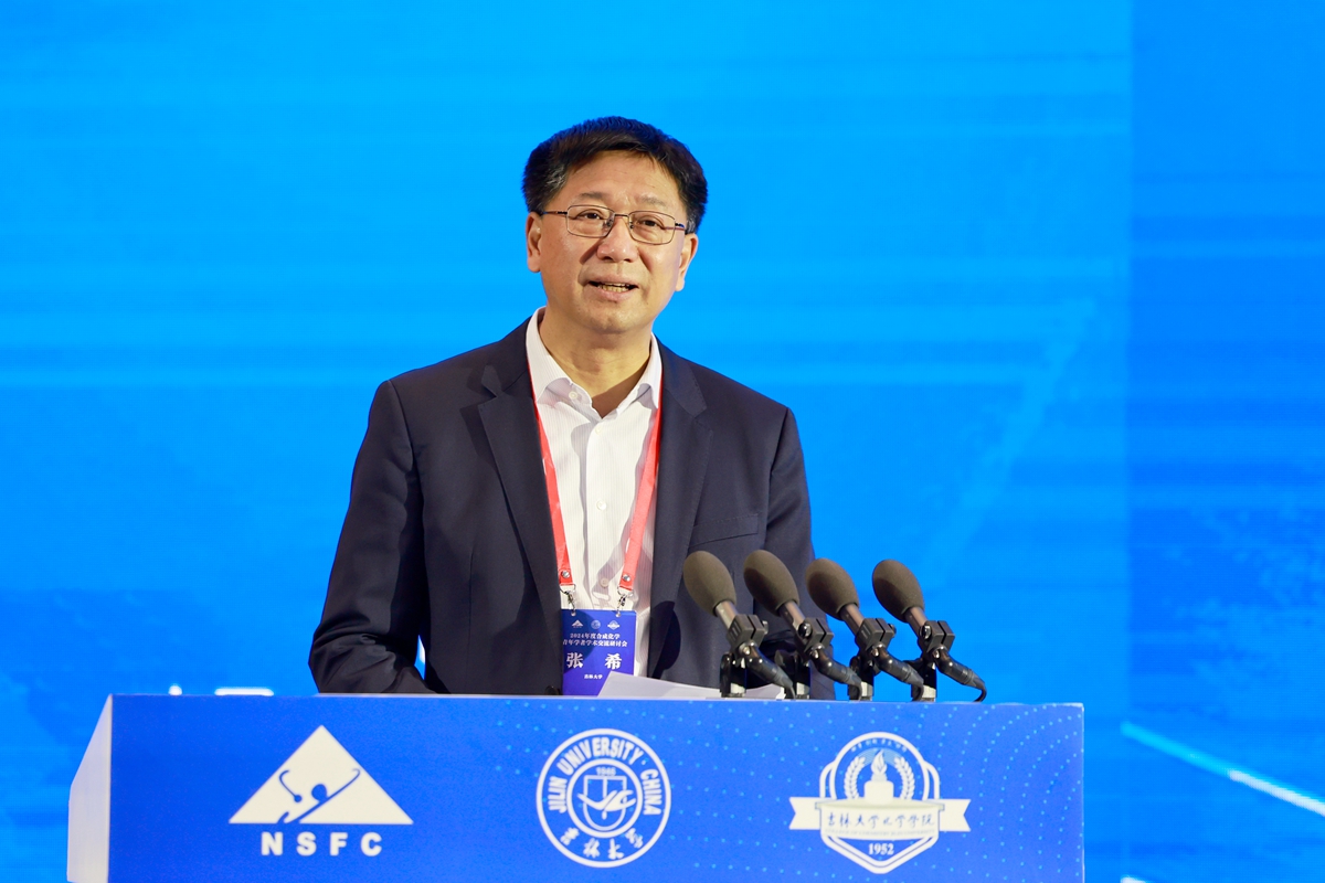 张希在致辞中向与会专家学者的到来表示欢迎,向大家长期以来对吉大的关心支持表示感谢。他表示,化学是研究化学反应和物质转化的一门学科。它的灵魂在于创造,创造新结构,创造新分子;它的魅力在于变化,出神入化,永无止境。希望青年学者通过不懈努力,不断挑战难关,登上数不尽的灿烂顶点。张希指出,如Roald Hoffmann所说,科学依赖争论。一方面,它可以是纯粹的论证过程,事实的陈述,另一方面,它也可以意味着争执、反对,这两方面的含义对科学的进步都有意义。他希望大家充分利用此次会议的机会,自由、平等、理性地争论与讨论,明确合成化学现在的研究重点以及未来的发展趋势。张希特别感谢大家对中国化学会旗舰刊物CCS Chemistry的大力支持。他表示,如果每一篇论文比作一滴水滴,每一期是一条消息,日久天长,不懈努力,CCS Chemistry会成长为可观的知识长河。未来让我们大家一道努力,让化学的知识长河奔流不息,让我们明天的生活更加美好。