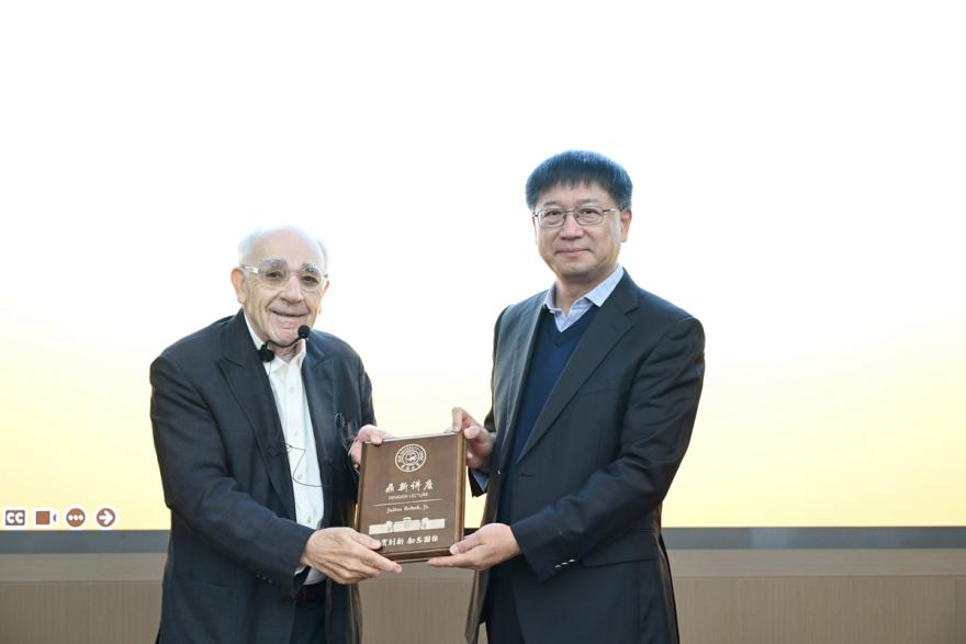 校长张希主持讲座,并为Rebek教授颁发“鼎新讲座纪念牌”。