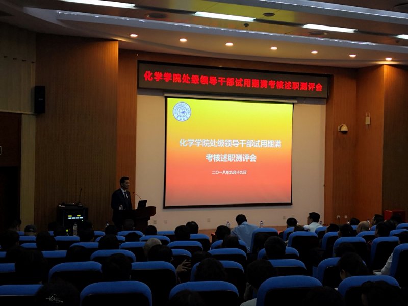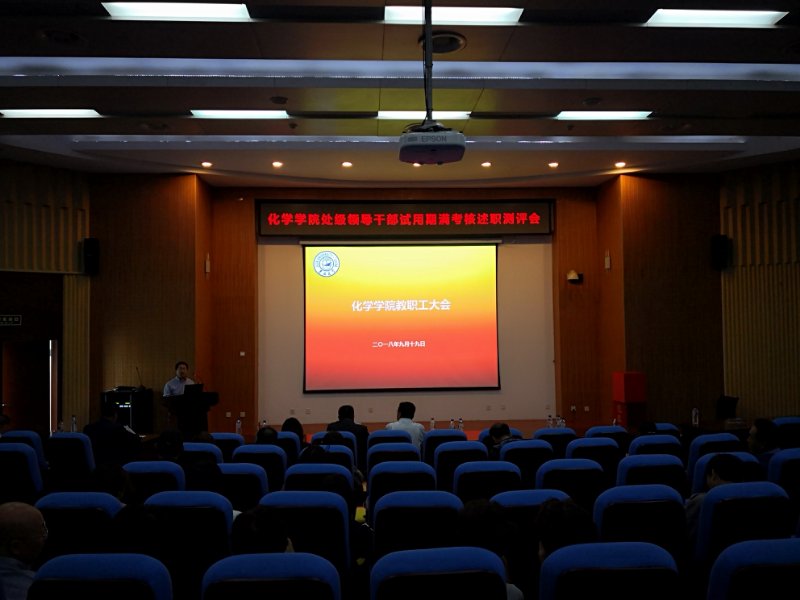 在无机-超分子楼圆形报告厅召开了全院教职工大会暨处级领导干部试用期满考核述职测评会。测评会由ACG港湾