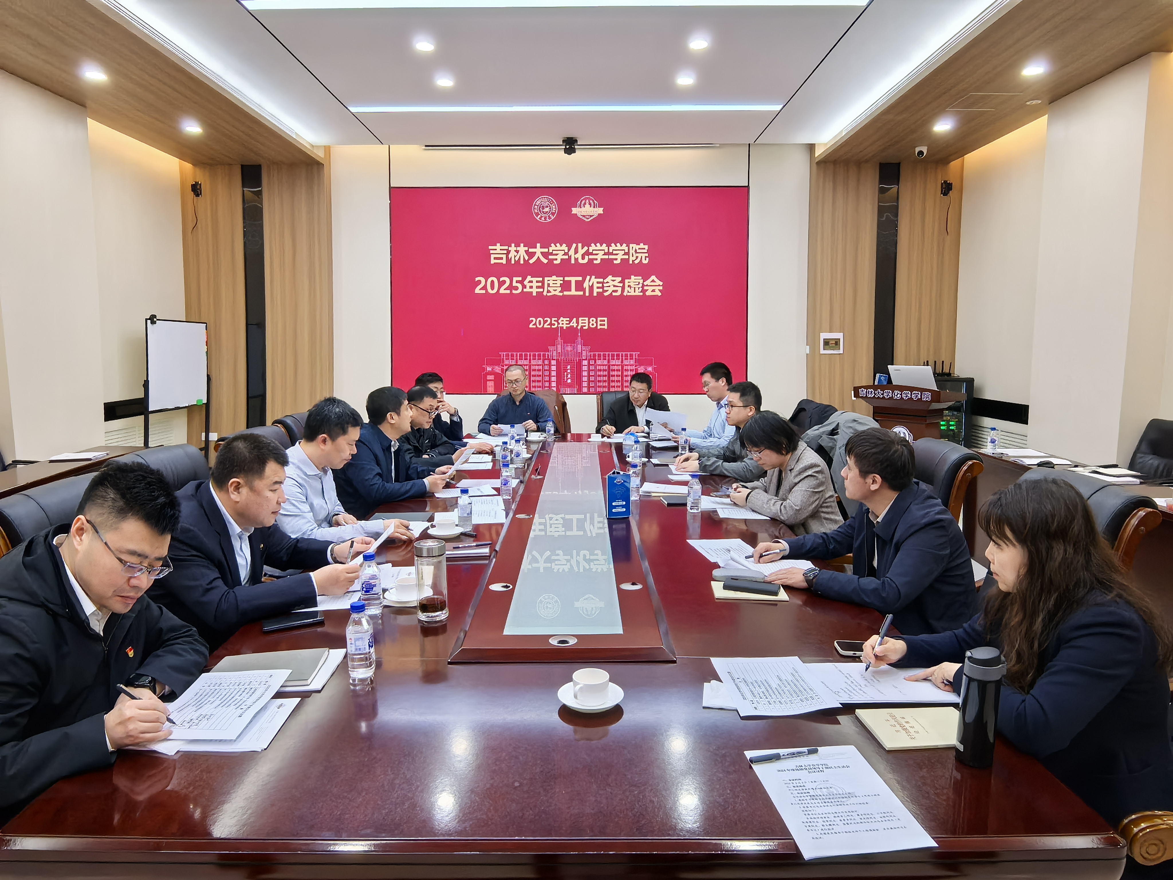 在唐敖庆楼A308会议室召开2025年度工作务虚会,学院党委书记马本华、院长李乙等领导班子成员参加会议,会议由马本华主持。