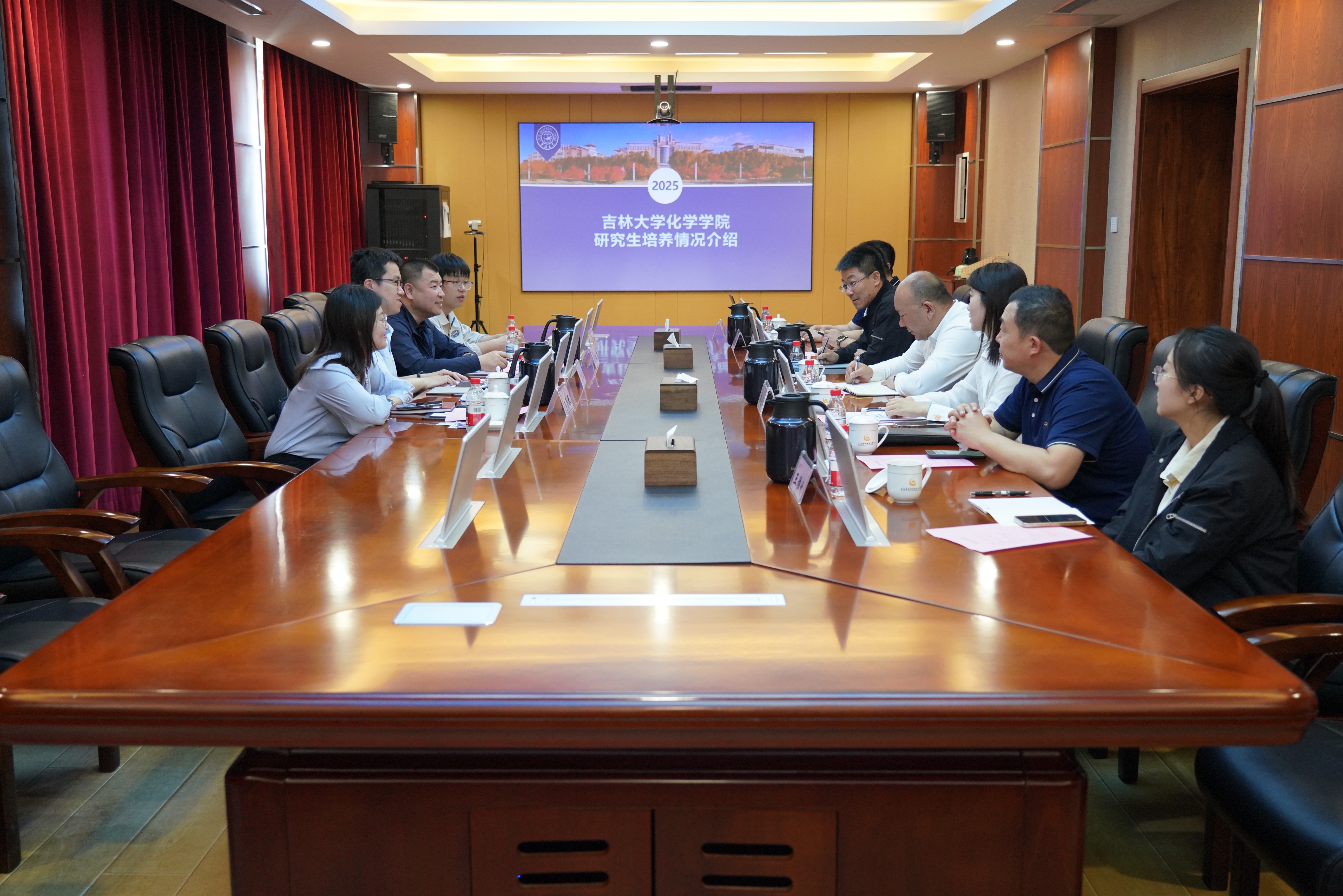 王洋介绍了学院在学科发展历程、科研平台及人才培养方面的情况。他表示,学院希望未来在研究生联合培养、共建科研实践基地、探索科技成果高效转化机制等方面进一步开展合作。江宇航介绍了学院2025年毕业研究生基本情况以及学生的求职意愿。他表达,学院非常支持毕业学生能够到长春黄金研究院有限公司等行业头部企业就业,希望能进一步加强校企协同,为吉林发展留住更多人才。