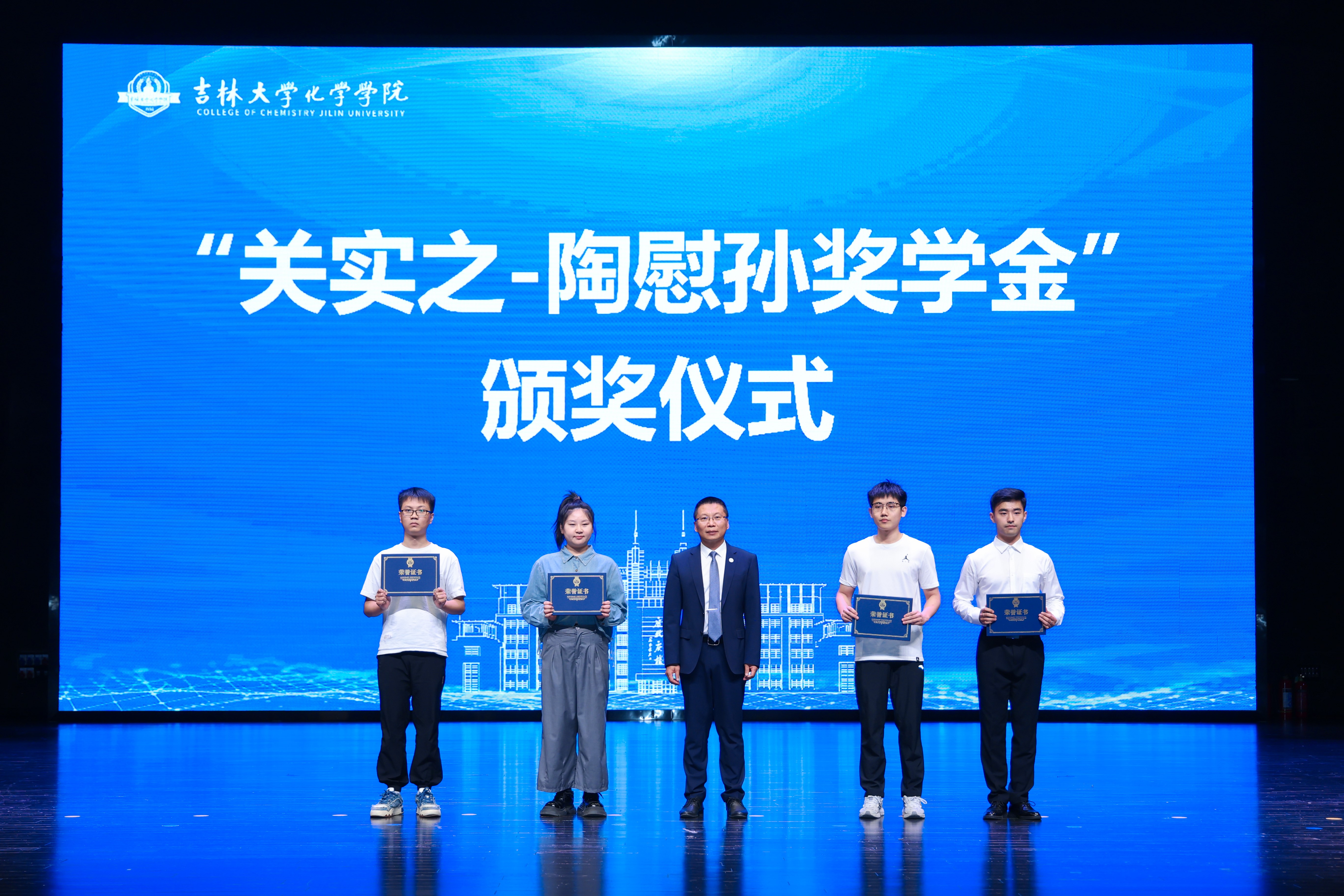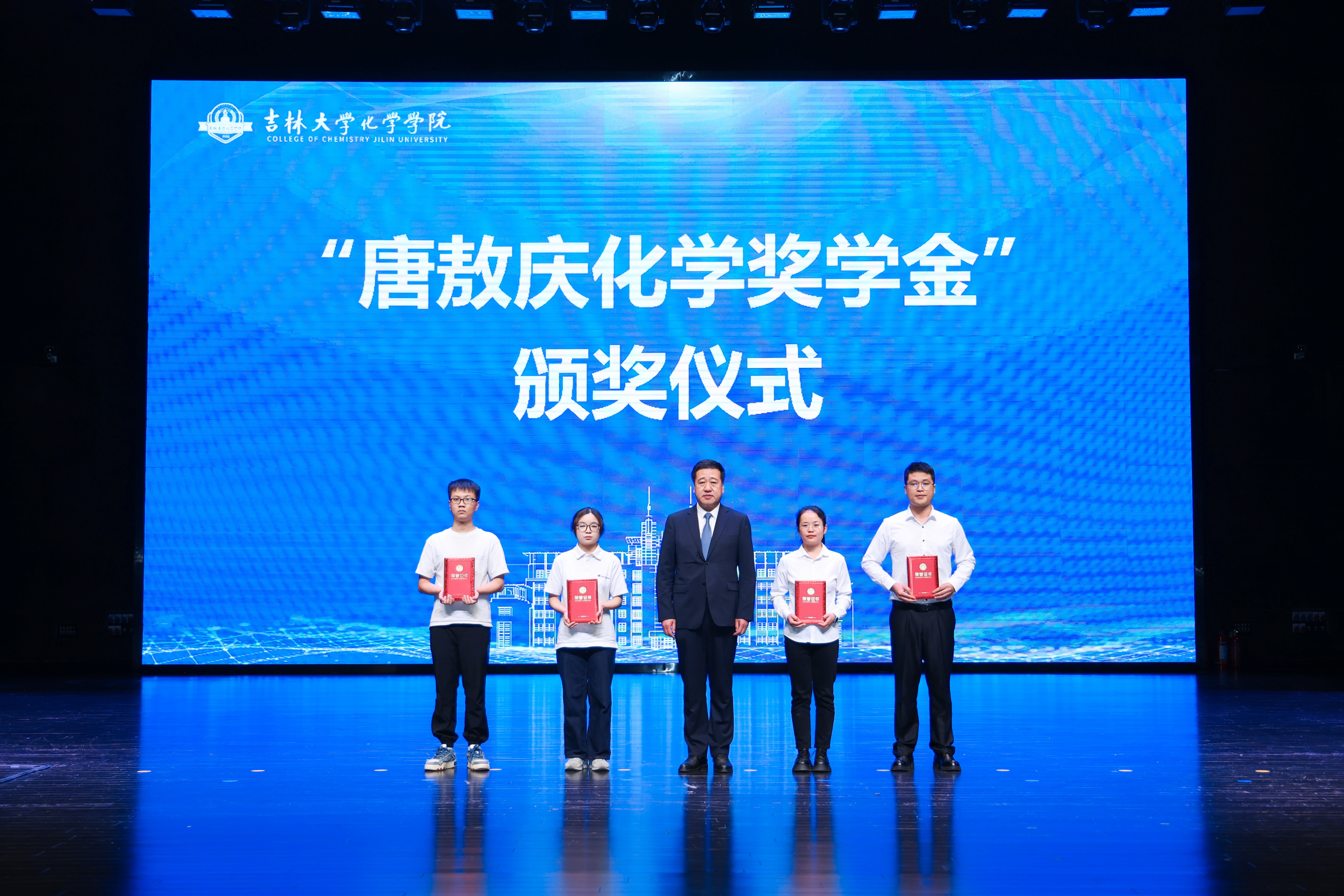 学生奖学金颁奖仪式上,丁世海为2024年度“唐敖庆化学奖学金”获奖学生代表颁奖。