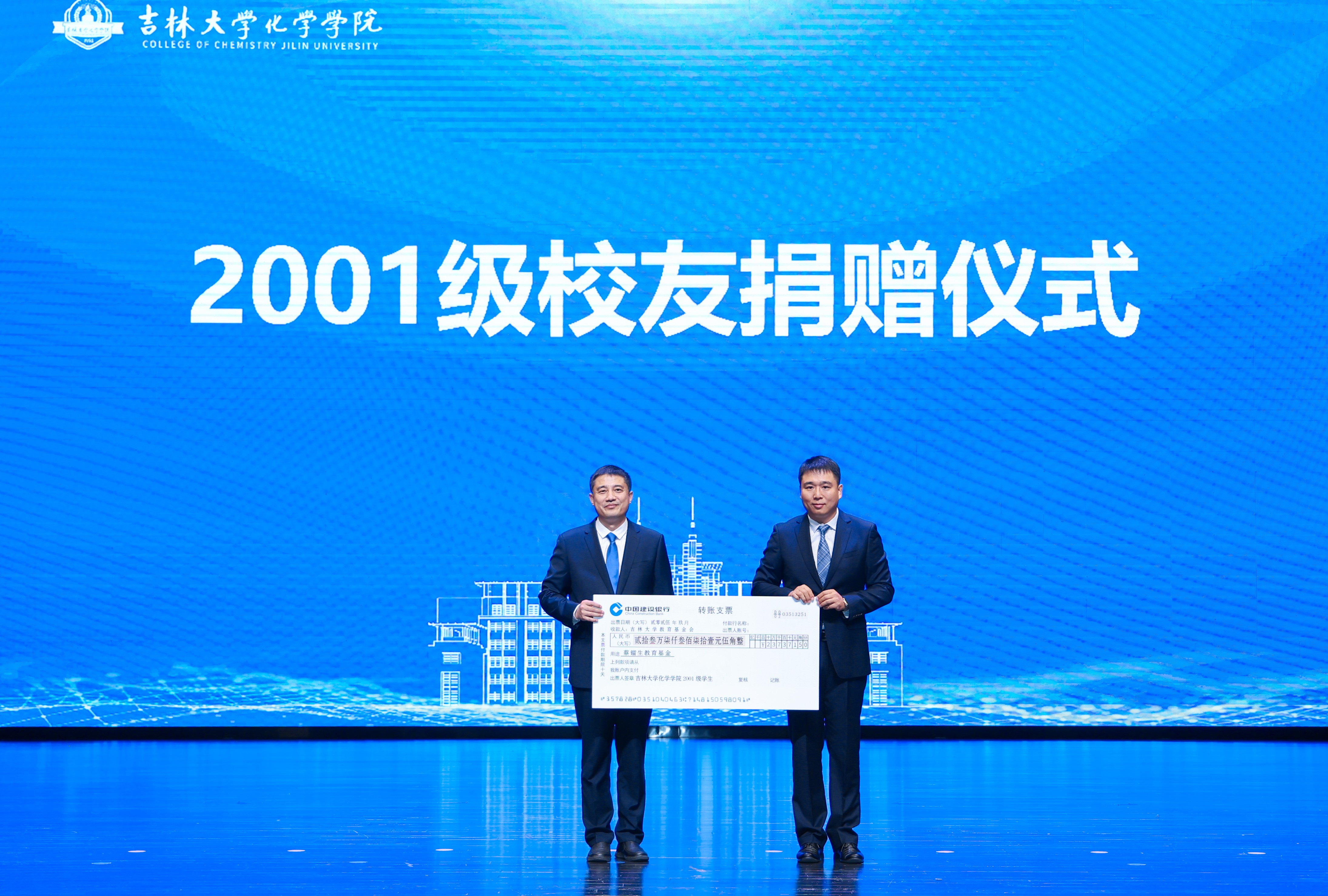 学生奖学金颁奖仪式后,赵博代表2001级校友向学院递交捐赠支票,学院党委书记马本华向2001级校友回赠纪念牌。