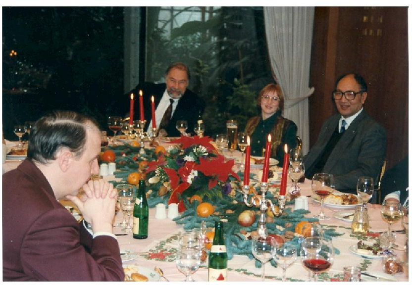 图2 1994年和《Makromol. Chem.》杂志同仁共度圣诞节 左一是编辑Bernd Jung,左二是Aachen大学教授、主编Hartwig Höcker