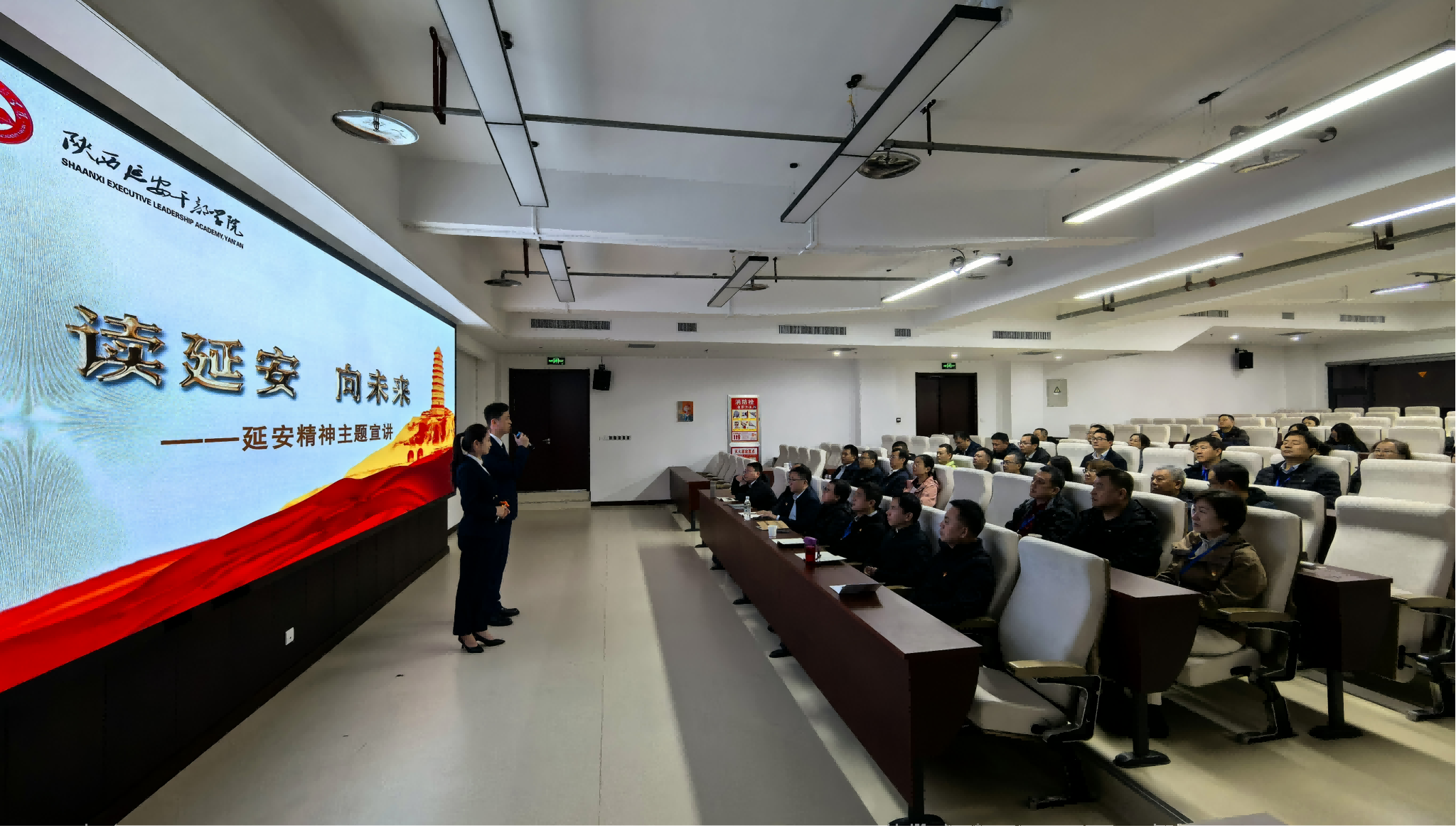 随后,开班第一课由杨延虎教授主讲《深入学习习近平总书记关于弘扬延安精神的重要论述——延安精神及其新时代价值》,系统阐释了延安精神“坚定正确的政治方向,解放思想实事求是的思想路线,全心全意为人民服务的根本宗旨,自力更生、艰苦奋斗的创业精神”的核心内涵,为此次培训奠定思想理论基础。