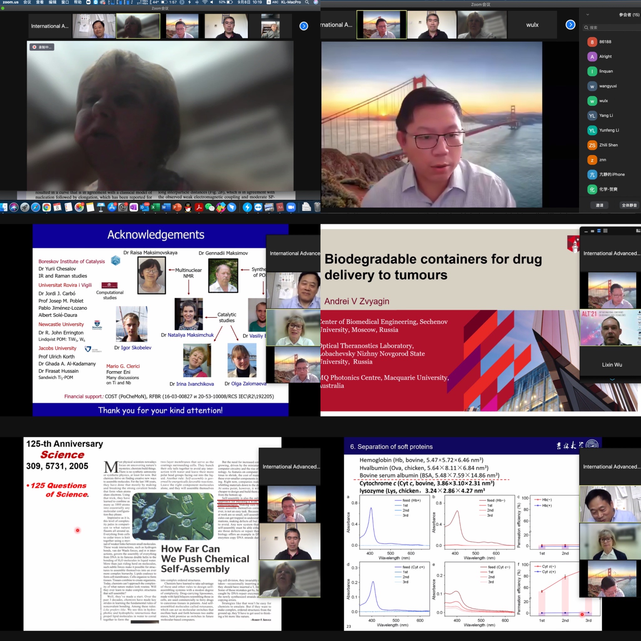 会议邀请来自俄罗斯圣彼得堡国立信息技术、机械与光学大学及多伦多大学Eugenia Kumacheva院士、俄罗斯新西伯利亚伯斯科夫催化研究所Oxana Kholdeeva教授、俄罗斯托木斯克国立大学Irina Kurzina教授、俄罗斯谢切诺夫大学Andrei Zvyagin教授、ACG港湾