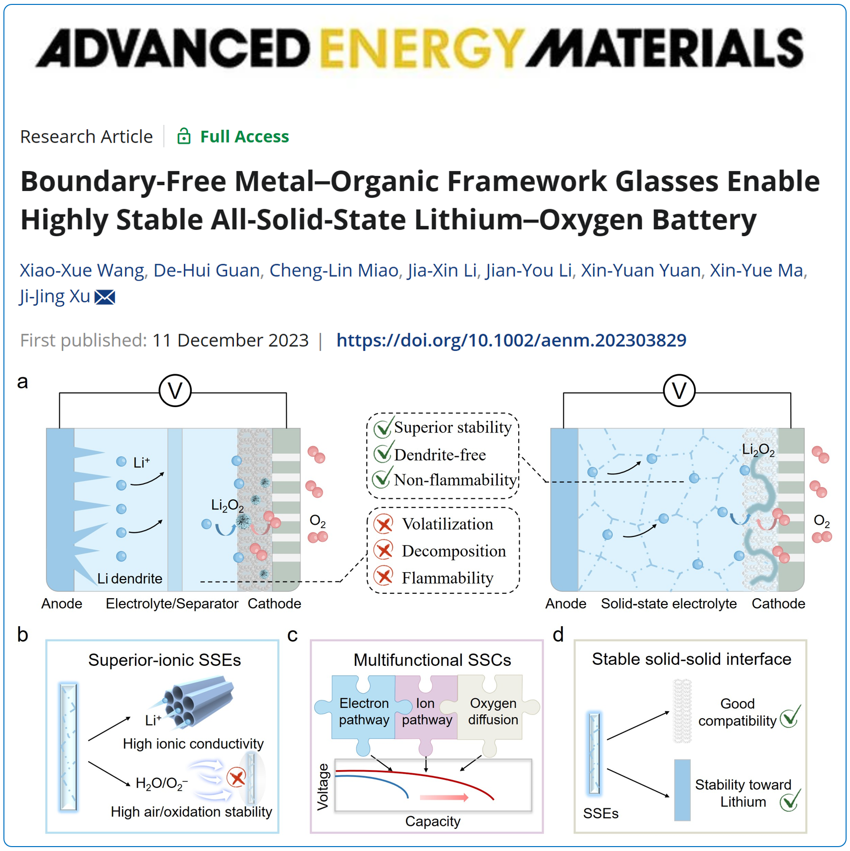 13.Adv. Energy Mater.:玻璃态MOF构筑高稳定全固态锂−氧气电池