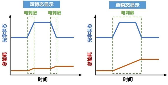 图1. 双稳态与单稳态显示的机理示意图。