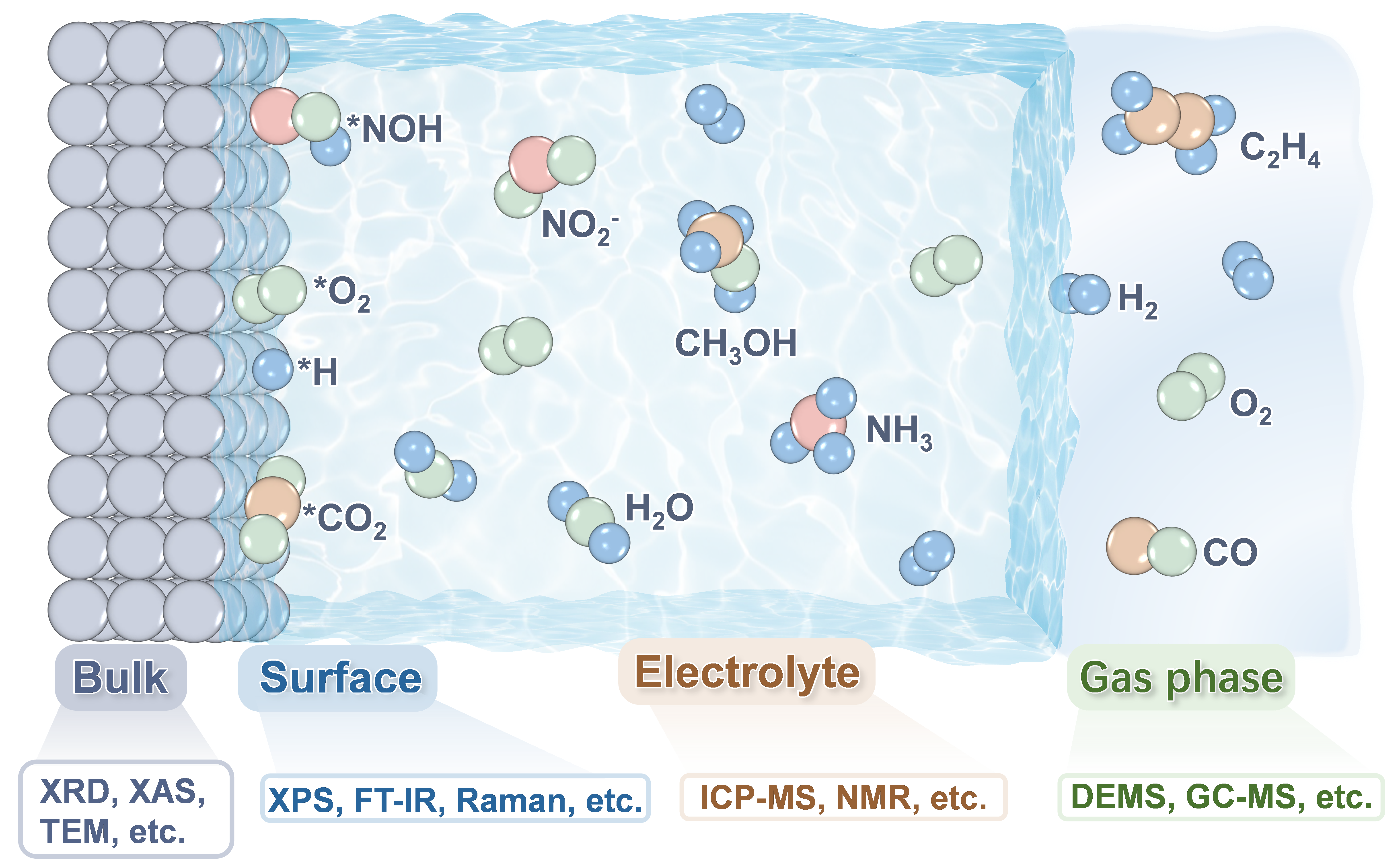 图4电催化剂重构过程的多维表征策略。