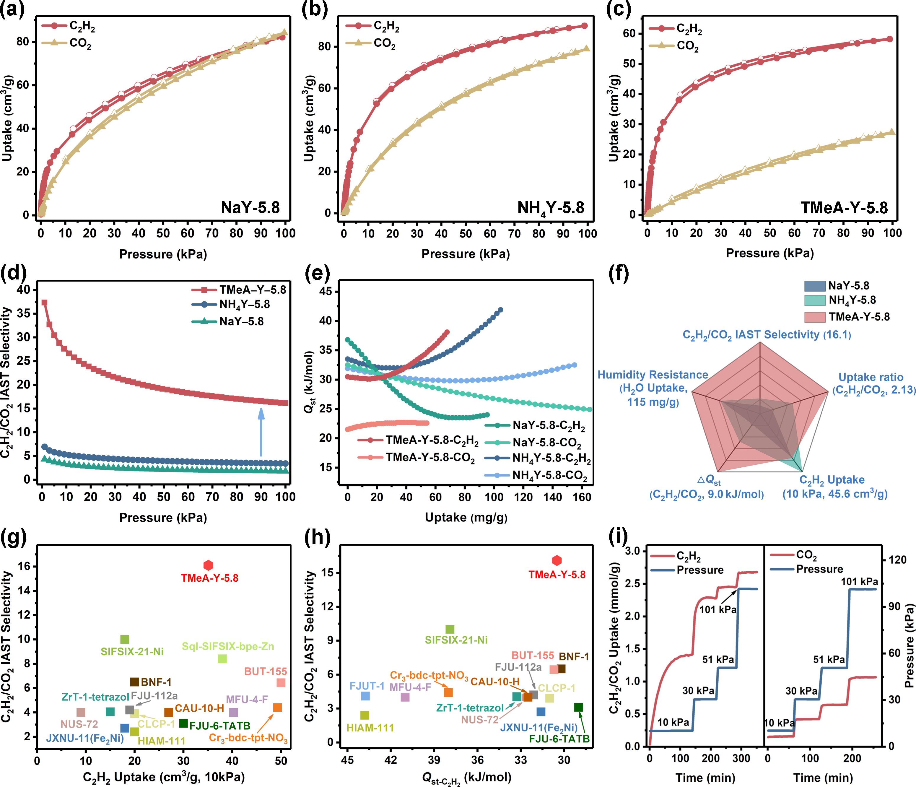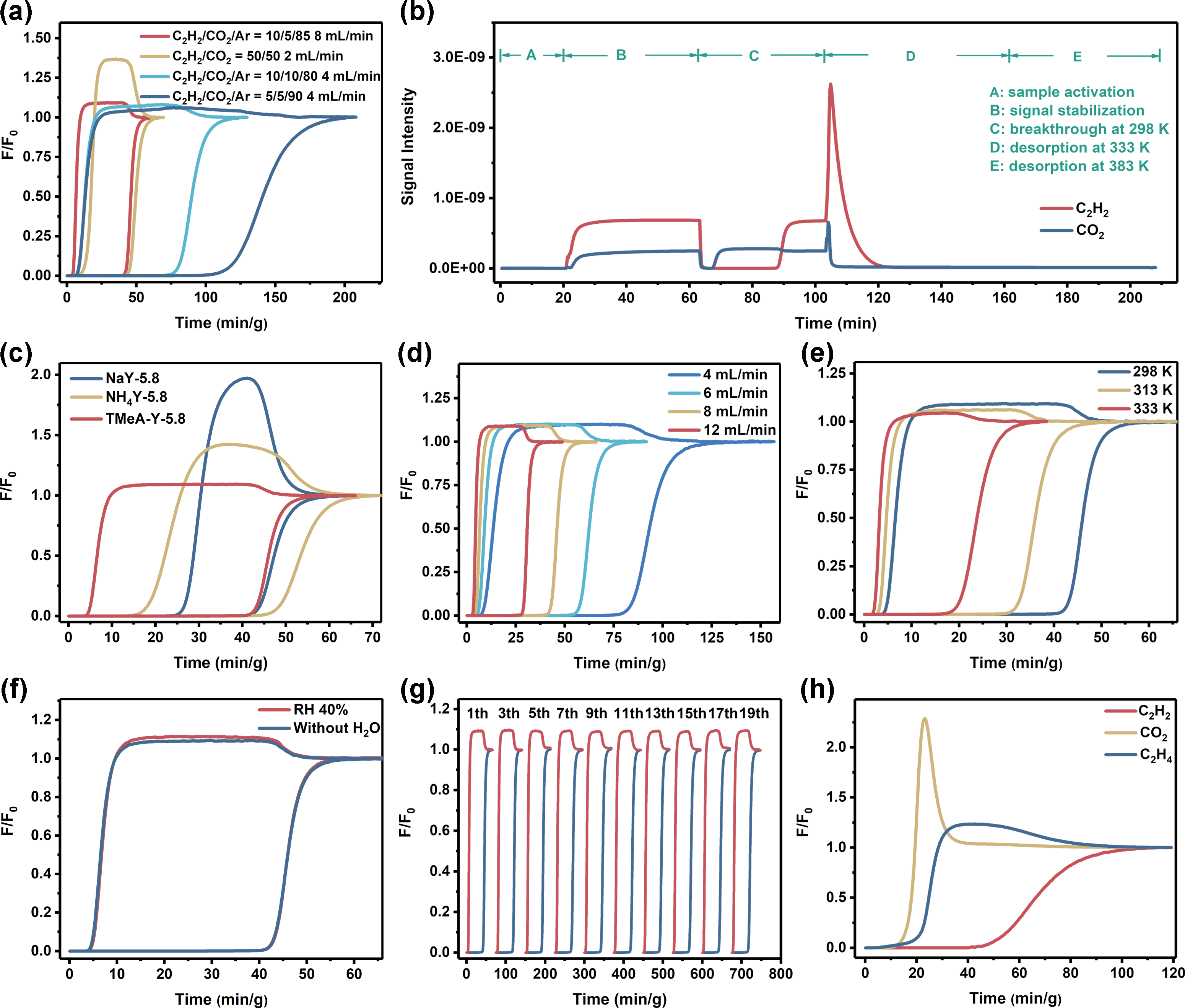 图2. TMeA-Y-5.8的动态吸附性能表征。