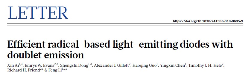 、超分子结构与材料国家重点实验室教授研究团队和剑桥大学卡文迪许实验室(Cavendish Laboratory)Richard H. Friend教授研究团队合作论文“高效双线态自由基发光二极管”(Efficient radical-based light-emitting diodes with doublet emission, Nature, 2018, 563, 536-540),ACG港湾