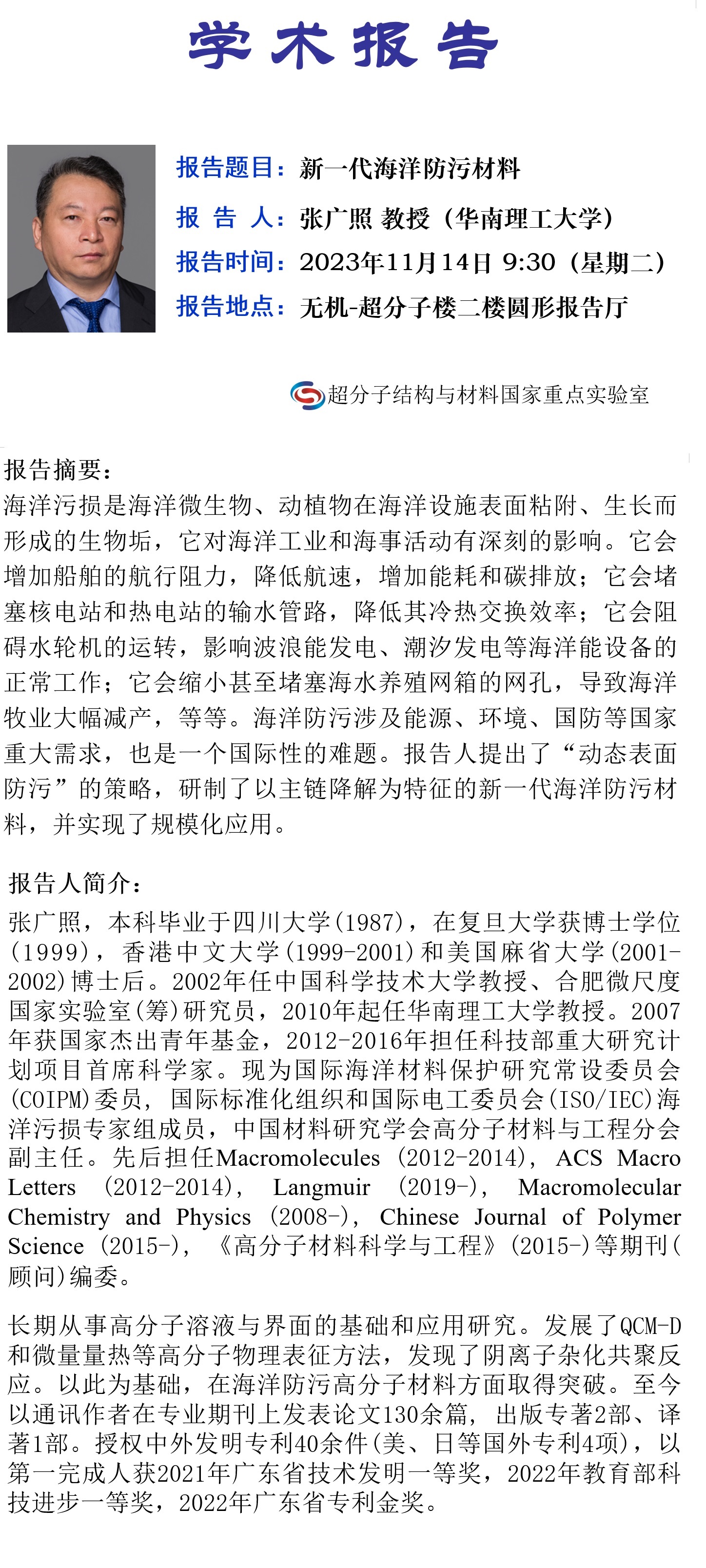 学术报告名称