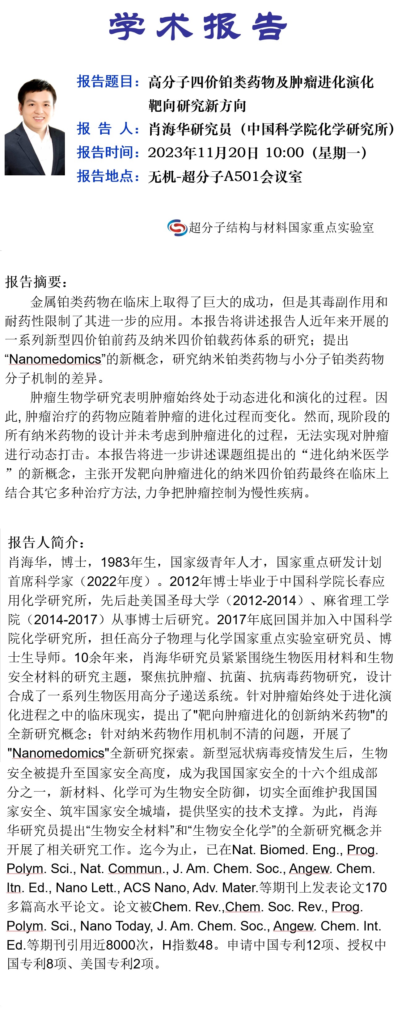 学术报告名称