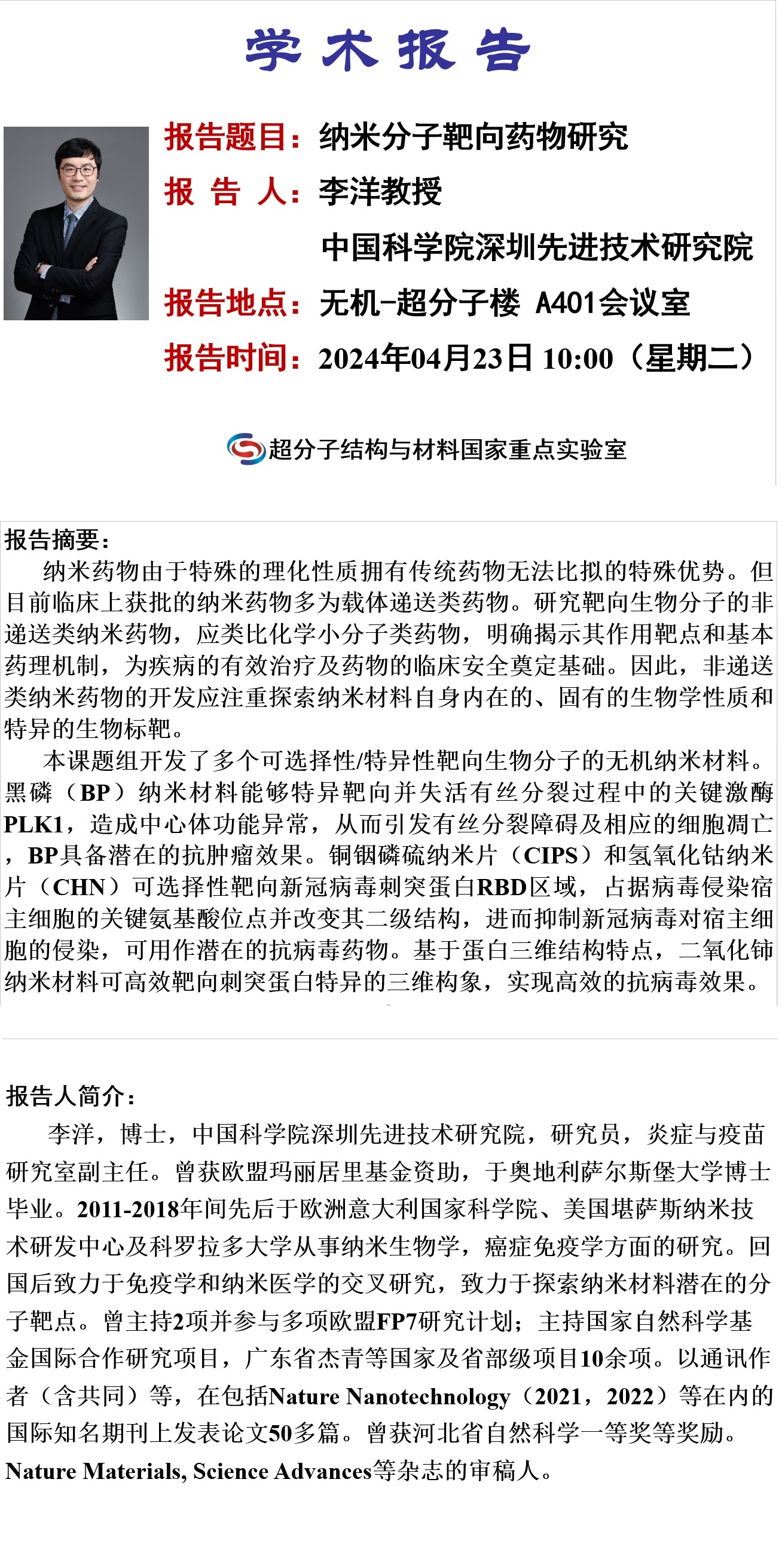 中心校区 无机-超分子楼A401会议室