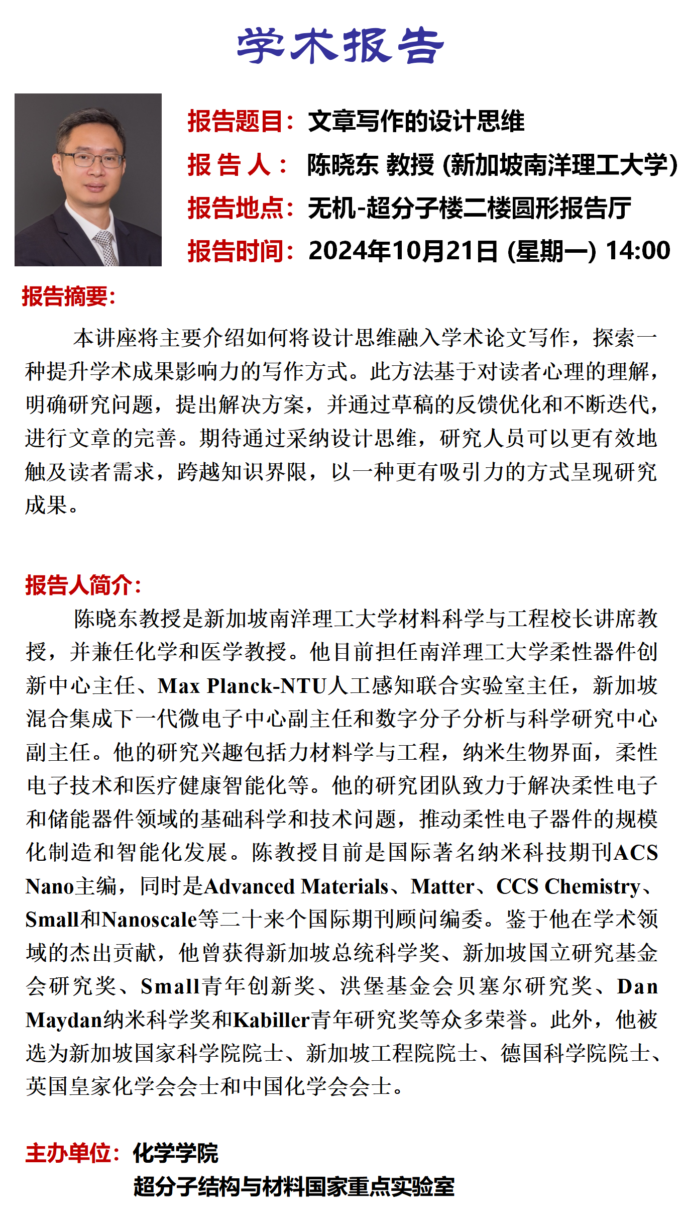 中心校区 无机-超分子楼二楼圆形报告厅