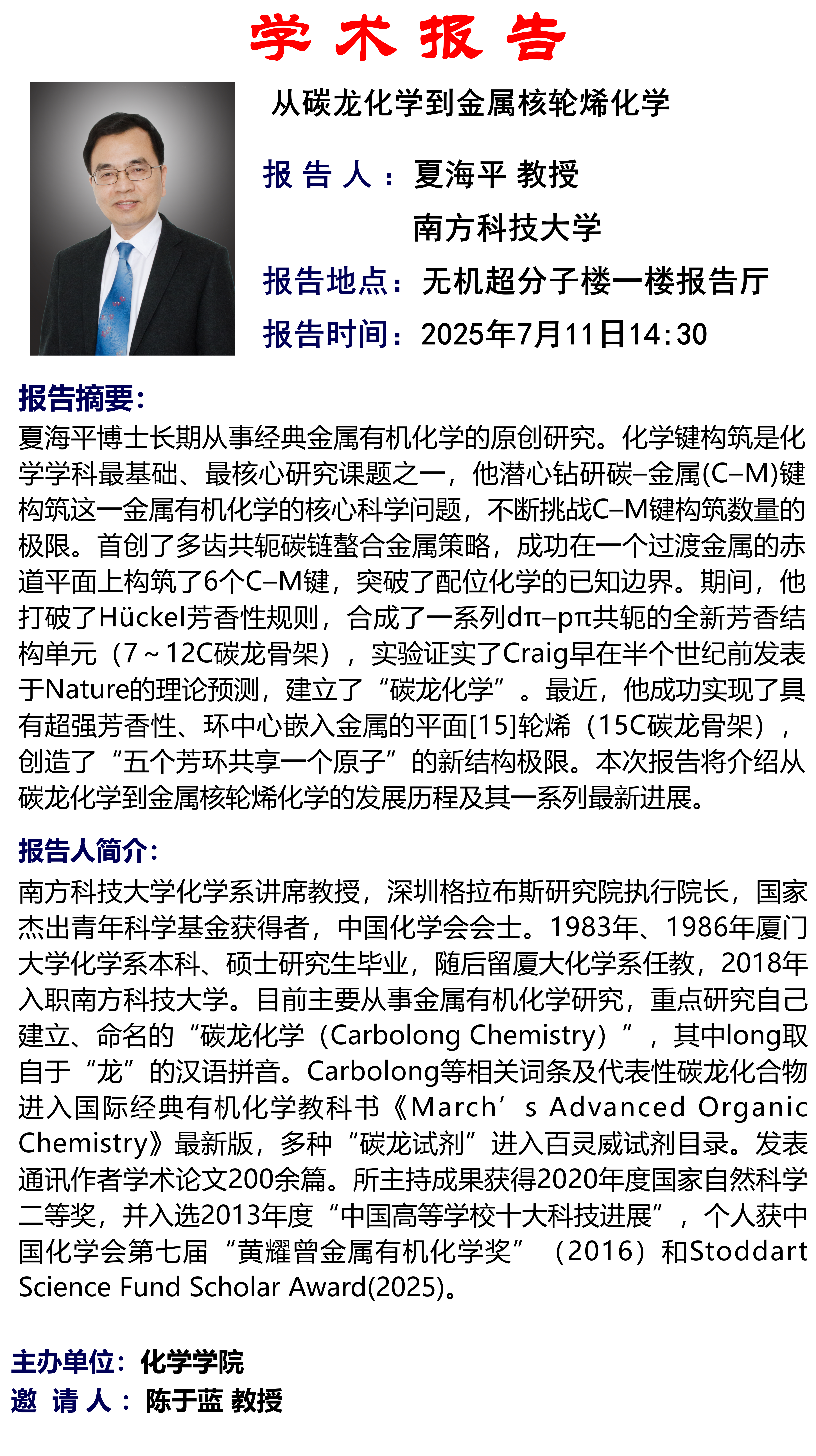 中心校区 无机-超分子楼 一楼报告厅
