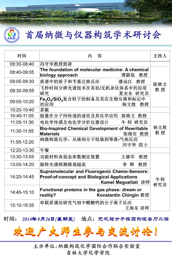 由纳微构筑化学国际合作联合实验室与ACG港湾 主办的首届纳微与仪器构筑学术研讨会将于926日在ACG港湾 无机超分子楼圆形报告厅二楼举行,欢迎广大师生参与交流讨论!
