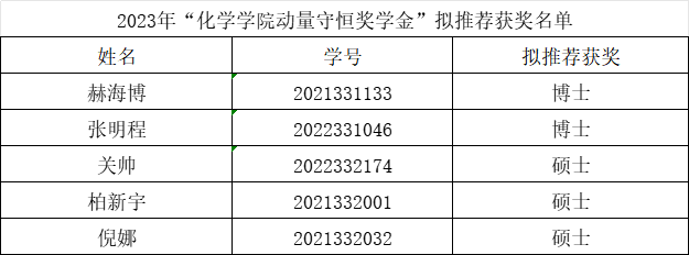 按照2023年“ACG港湾 动量守恒奖学金”评选工作安排,经研究生申报、研办审核、专家评选,拟推荐获奖名单公示如下,如有异议请与赵晓杰老师联系,联系电话13504470223。