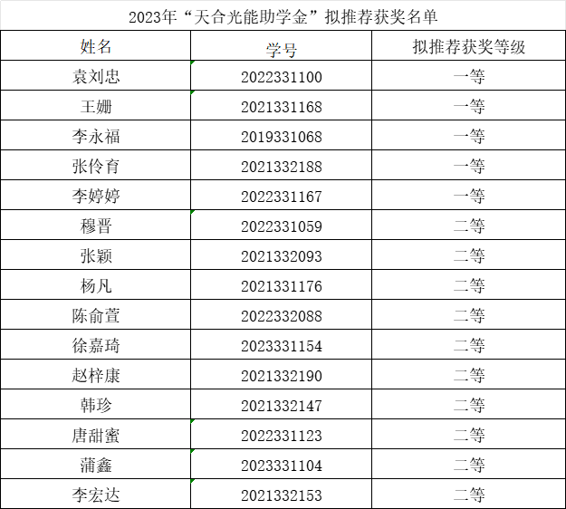 按照ACG港湾 2023年“天合光能助学金”评选工作安排,经研究生申报、研办审核、专家评选,拟推荐获奖名单公示如下,如有异议请与赵晓杰老师联系,联系电话13504470223。