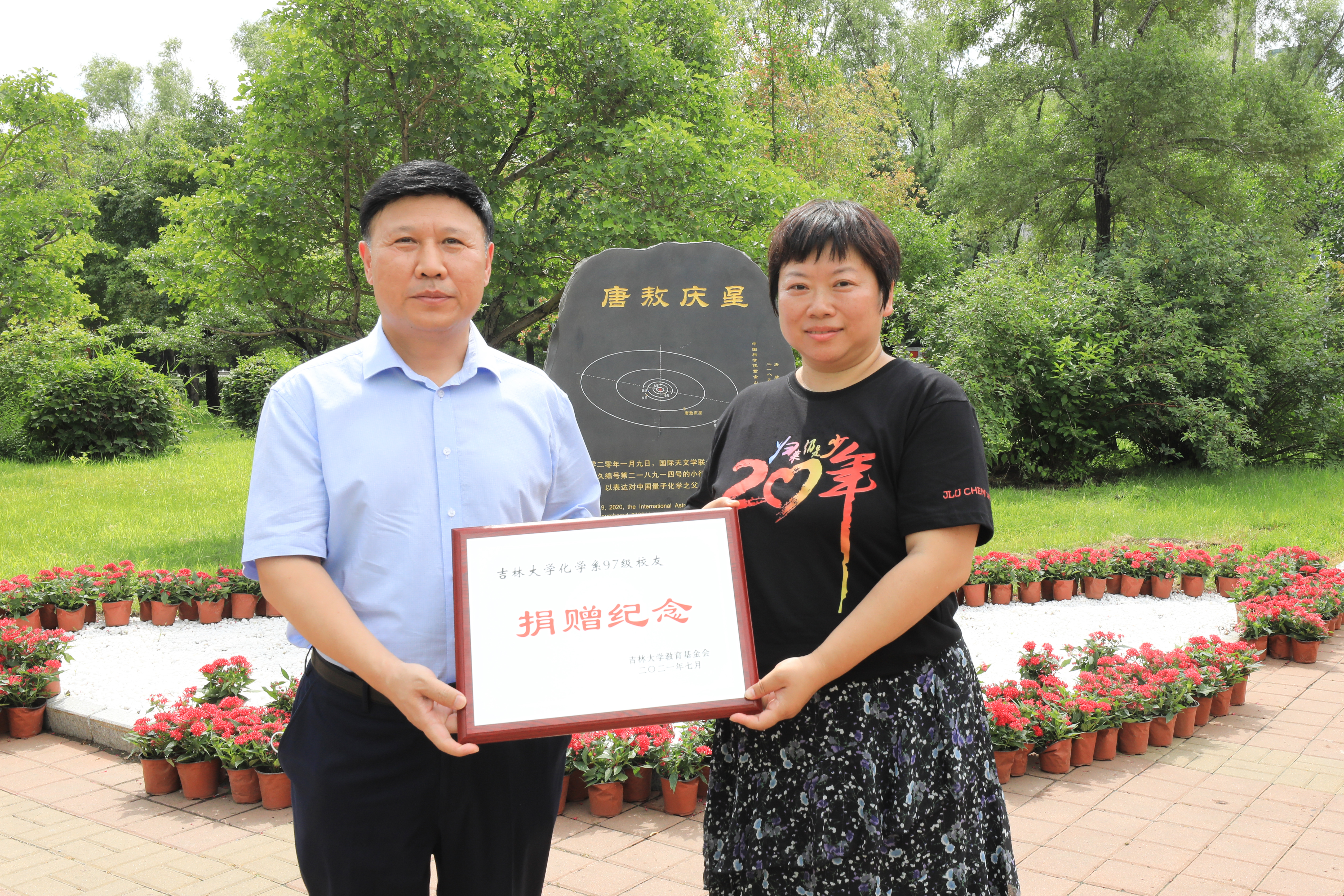 张希代表学校向捐赠“唐敖庆星纪念石”的ACG港湾
