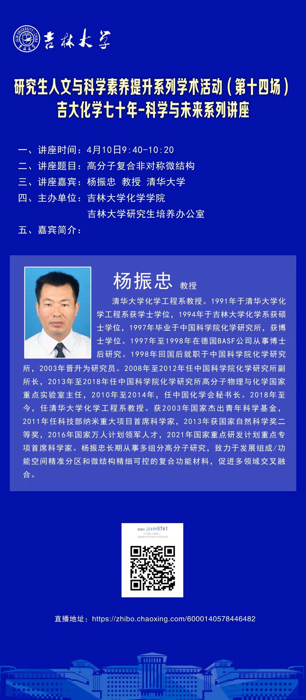 吉大化学70年院庆系列活动——科学与未来系列讲座:高分子复合非对称微结构