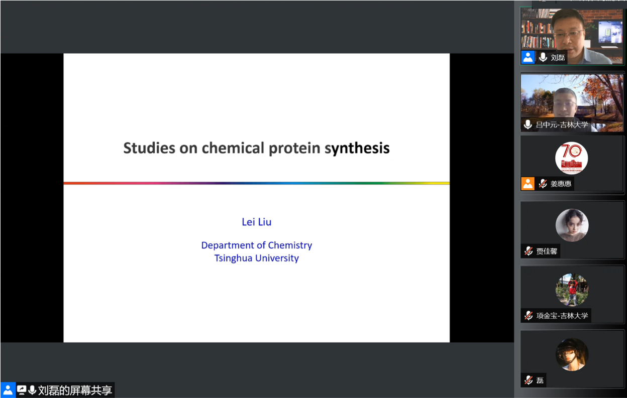 5月14日上午,清华大学化学系教授、国家杰出青年科学基金获得者刘磊应邀线上做客“吉大化学七十年——科学与未来系列讲座”,以“蛋白质化学合成探索”为题,为学院师生作学术报告。