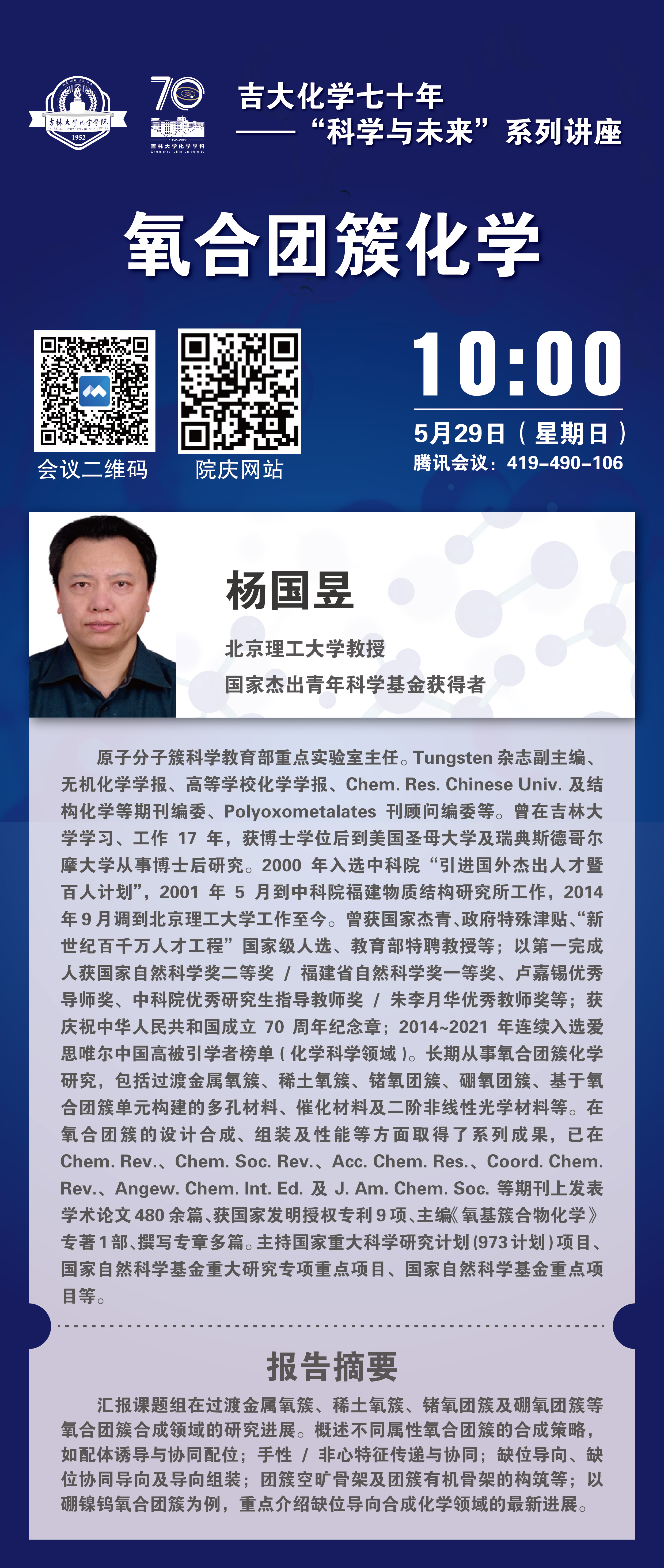 吉大化学70年院庆系列活动——科学与未来系列讲座:氧合团簇化学