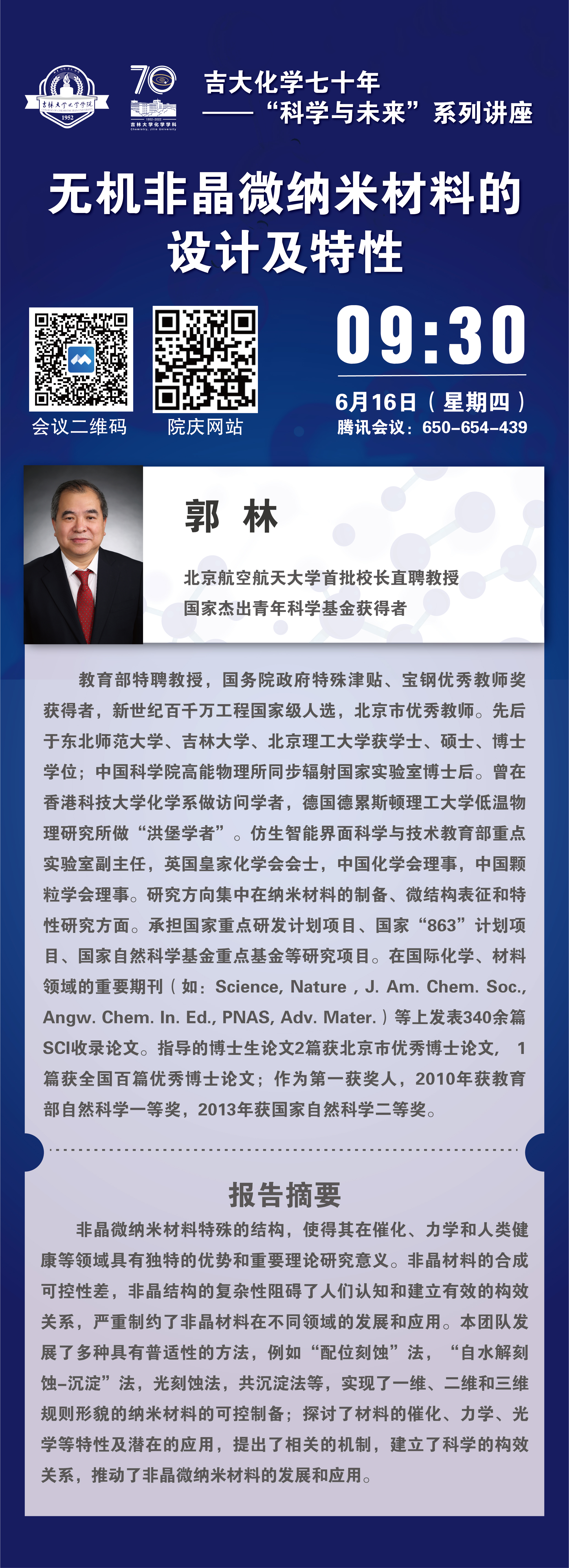 吉大化学70年院庆系列活动——科学与未来系列讲座:无机非晶微纳米材料的设计及特性